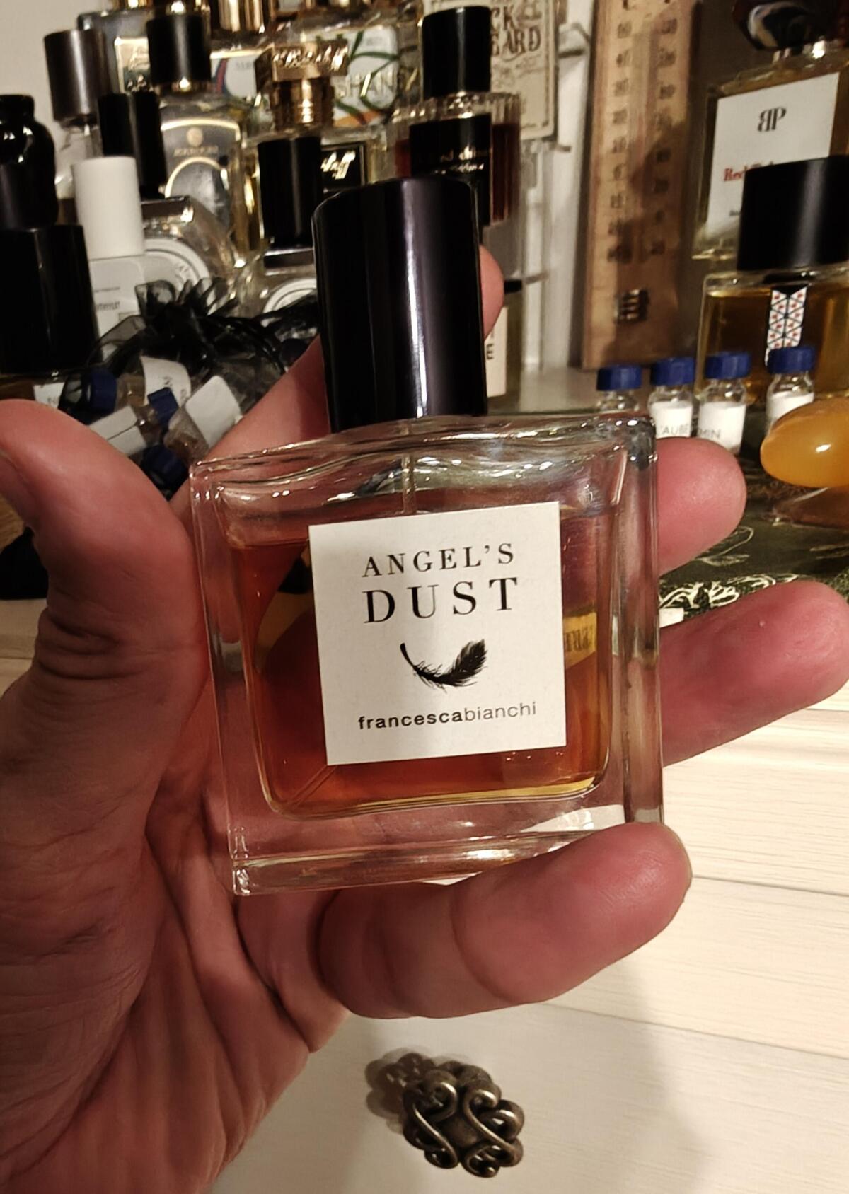 Pokud si představujete obvyklý parfém připomínající mastek, který "voní čistotou", Angel's dust pro vás bude jako facka. Kosatec v této skvostné vůni nebývalé síly je pouze hlavní herečkou ve sledu neuctivých a zatraceně smyslných postav. Ta mimóza, která zůstává v pozadí a občas vykoukne, ustupuje základu pryskyřic tak zahalujícímu a smyslnému, že vás okamžitě katapultuje do šaten divadla 30. let, kde se herečky a tanečnice kropí pudrovým parfémem zahaleným do sladkých, hříšných vůní. Hustota tohoto extraktu se vymyká běžným zvyklostem, ta sladkost je jako med, který se lepí na kůži a není z něj úniku. Dejte si však pozor, není to parfém pro každého. Musíte být hrdí, pyšní na to, že za sebou zanechává sladké, uhrančivé stopy, které mohou i otravovat, a nutno říci: parfémy Francescy Bianchi buď nenávidíte, nebo je šíleně milujete. Někdy mě skoro děsí, ptám se sama sebe: "Budu dost silná na to, abych je nosila?".