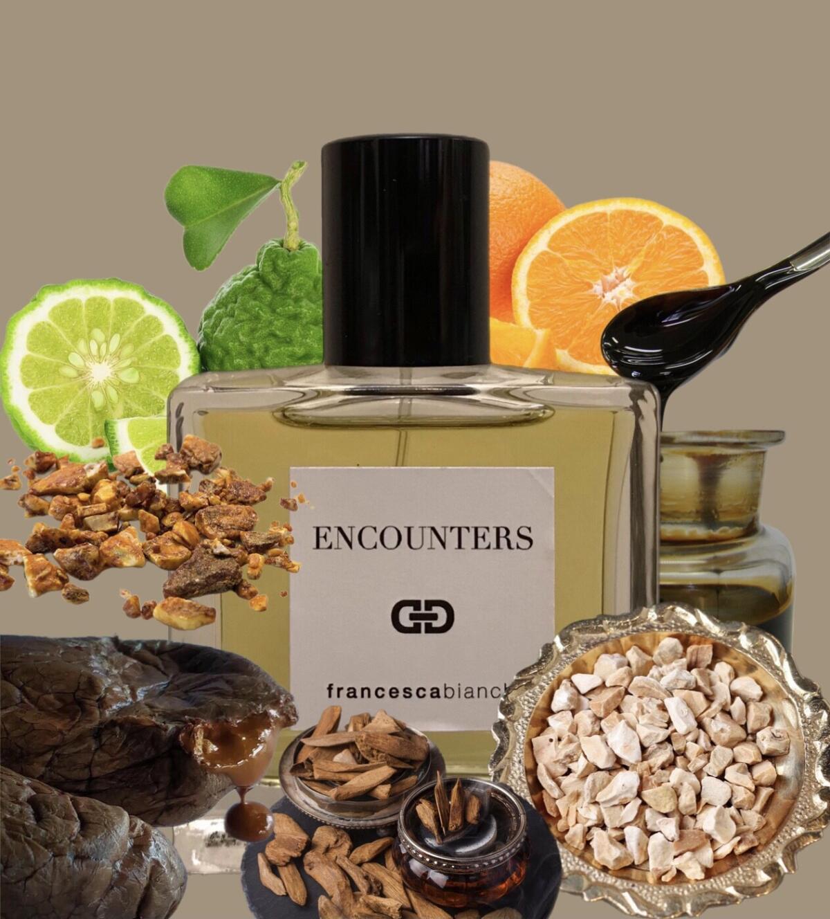 Encounters podle Francesca Bianchi je Woody Spicy vůně pro ženy a muže. Encounters byl/a uveden/a v roce 2023. "Nosem" za touto vůní je Francesca Bianchi. Vrchní tóny jsou Pomeranč, Koriandr, Bergamot, Černý rybíz a Levandule; střední tóny jsouKosatcové máslo, Růže, Andělika a Skořice ; základní tóny jsou Agarové dřevo (oud), Benzoin, Peruánský balzám, Santalové dřevo, Ambra, Kastoreum a Cedr.