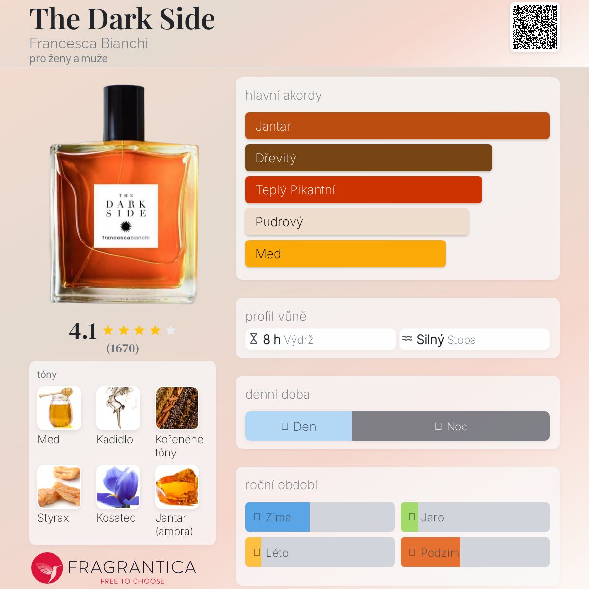 The Dark Side podle Francesca Bianchi je Orientální Vanilla vůně pro ženy a muže. The Dark Side byl/a uveden/a v roce 2016. "Nosem" za touto vůní je Francesca Bianchi.