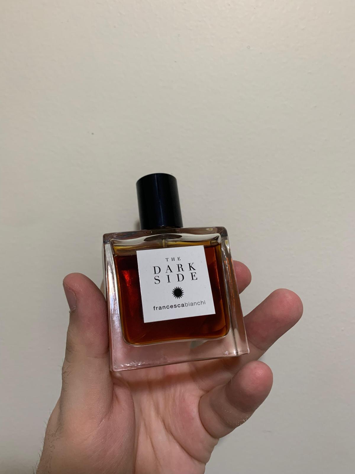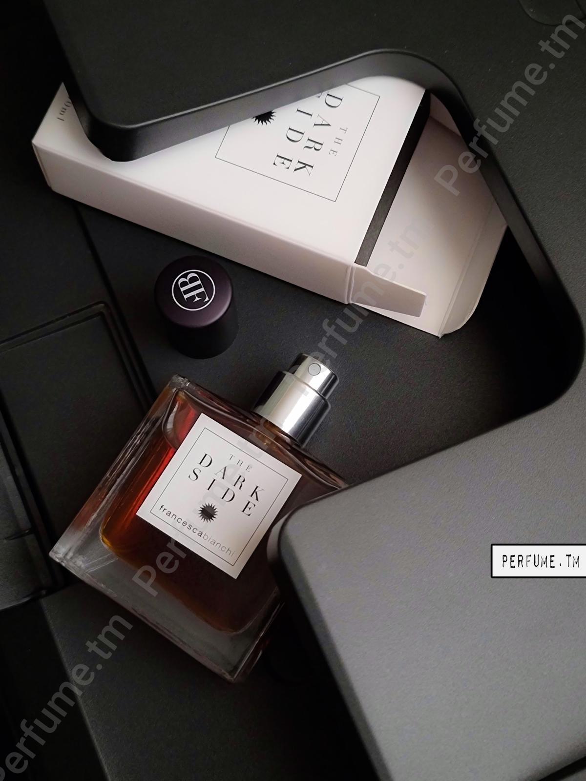 Temná strana. "Tedy jantar a pižmo, kadidlo a benzoin, aby komentovaly krajní sladkosti ducha a smyslů" (Baudelaire, Korespondence). Žádný parfém mi není dražší než Bianchi, protože ztělesňuje abstraktní a dokonalý ideál všeho, co by mělo být považováno za orientální parfém. Orientální vůně jsou komplikované, hutné, bohaté a nerozluštitelné směsi vanilky, jantarových akordů, pačuli a koření. Mají rozhodný, odvážný charakter, exotický, vynikající půvab. Kdo nosí orientální vůni, implicitně (a možná i explicitně) vyhlašuje válku světu, konvencím, předsudkům: mají svobodnou a nekompromisní osobnost, výstřední a nejasně romantický vkus. The Dark Side toto vše vystihuje v mém osobním pojetí čichové rodiny. Hutně se otevírá kafrovými, mentolovými a čokoládovými tóny pačuli, které obklopují vše ostatní jako osudové sevření a akt čistého násilí. Některé suroviny však nezapadají. Zdá se, že se vzbouří, a jakmile se vrchní tóny pačuli vypaří, okamžitě se dostaví pudrově-dřevitý triumf kosatce, následovaný štiplavou aurou vytvořenou komplikovanou kořeněnou směsí hřebíčku (isoeugenolu), skořice, kmínu atd. Odtud se otevírá cesta k surovinám z orientální rodiny: benzoinu, pryskyřičným balzámům, lehce kouřovému cypriolu, styraxu, olibanu... je to skutečná změť. Kombinace základních tónů v tomto složení je mimořádně komplexní. Dark Side je, řečeno na rovinu, mnohem bohatší než Pardon (Nasomatto) a Aramesh (Maria Lux), i když do jisté míry sdílí jejich orientální fyziognomii. Jistě, The Dark Side disponuje i jistým akordem Oud, ale abych byl upřímný, vnímám ho jako dosti synkopický. Je to zcela manýristická a neodpovídající představa oudového oleje. Nejde o aranžmá podobné Oud Synth, nebo třeba levnějším Firmenich a Givaudan Specialties, ale spíše o abstraktní představu "jaký by Oud měl být", která ve skutečnosti nemá s Oud nic společného. V tomto ohledu se mi zdá, že Bianchiho vyprávění neodpovídá skladbě. Mluvit o Oud u takového parfému je ponižující ve srovnání s bohatostí a složitostí formule.