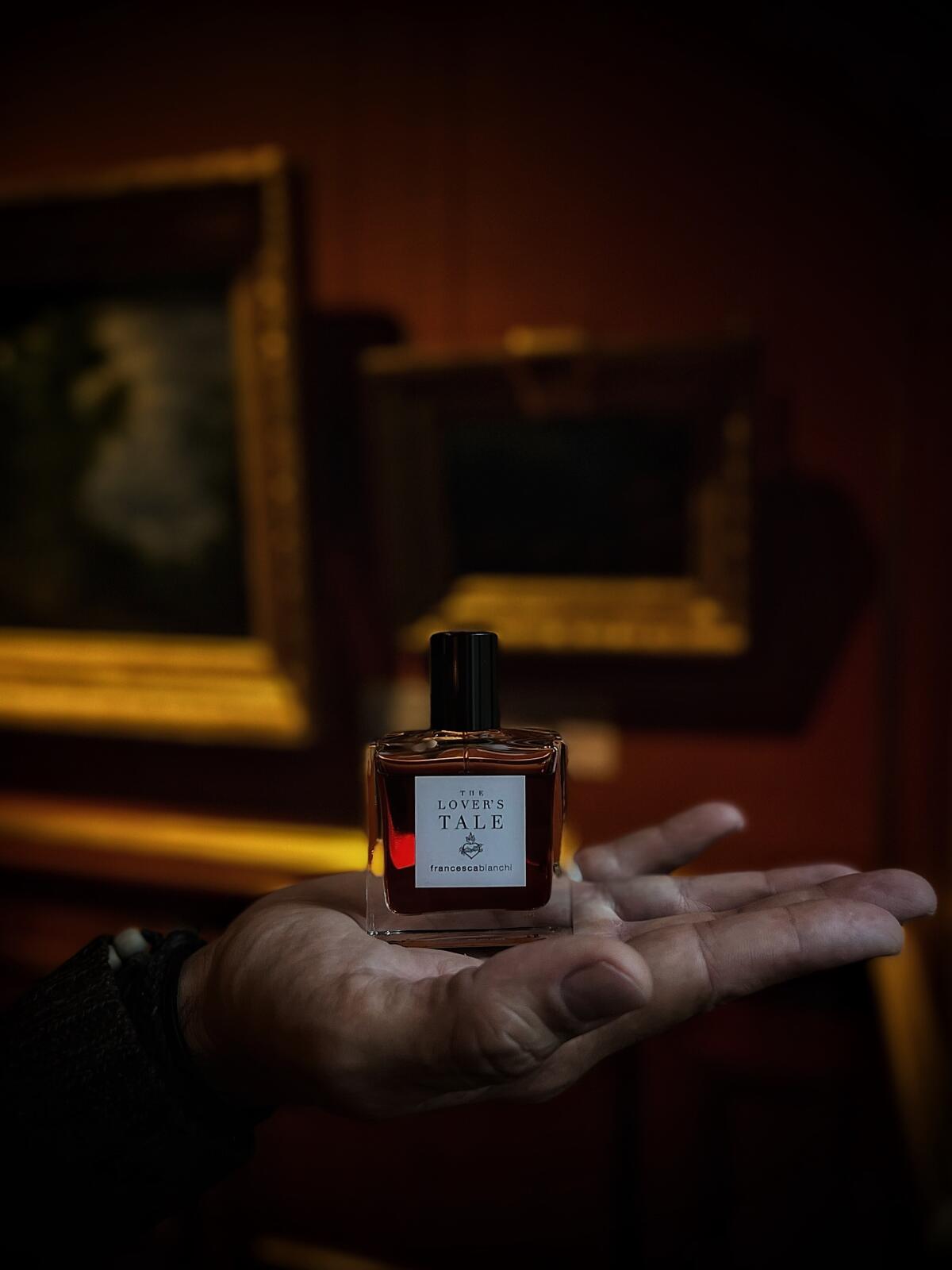 The Lover's Tale podle Francesca Bianchi je Leather vůně pro ženy a muže. The Lover's Tale byl/a uveden/a v roce 2018. "Nosem" za touto vůní je Francesca Bianchi. Vrchní tóny jsou Med, Mimóza, Aldehydy a Bergamot; střední tóny jsouOrris, Broskev, Otočník, Egyptský jasmín a Bulharská růže ; základní tóny jsou Kůže, Kastoreum, Pižmo, Labdanum, Dubový mech, Vetiver a Santalové dřevo.