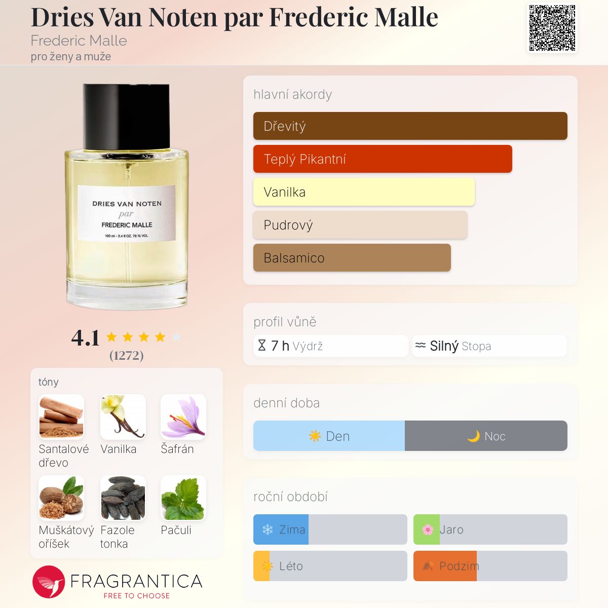 Dries Van Noten par Frederic Malle podle Frederic Malle je Orientální Woody vůně pro ženy a muže. Dries Van Noten par Frederic Malle byl/a uveden/a v roce 2013. "Nosem" za touto vůní je Bruno Jovanovic.