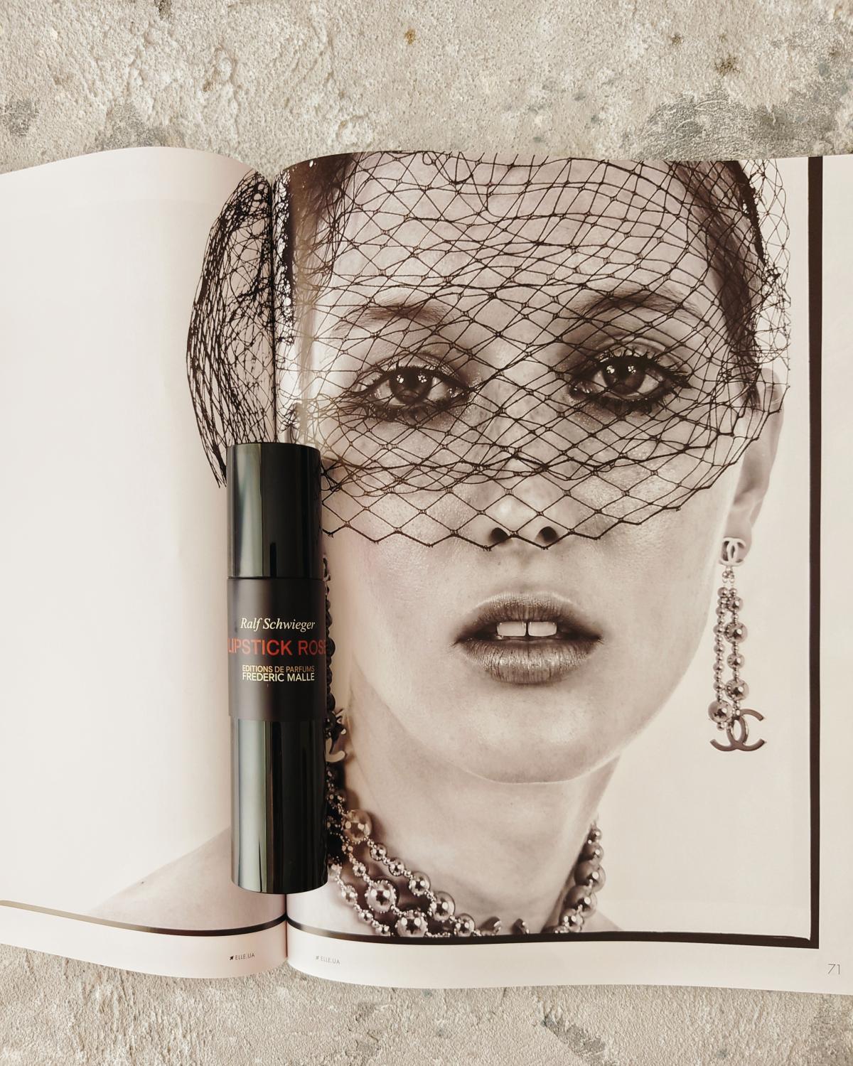 Při hledání vůně, která by definovala vůni rtěnky, jsem narazila na tento parfém, který je jako součet rtěnky s tvářenkou, štětcem, rýžovým pudrem a make-upem. Ve skutečnosti se vypráví, že parfumér Ralf Schwieger vytvořil tento vzorec na základě vzpomínky z dětství na vůni matčiny kabelky. Vzpomíná, jak jako dítě otevíral její kabelku a zasáhla ho červená a růžová vůně rtěnky a všeho, co jeho matka nosila, aby se zkrášlila. Líčidla a vzpomínky na dětství.