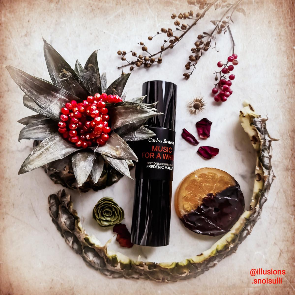 Pro mě je Music for a while moderní verzí Caron pour un homme. Vezměte Caron, přidejte pačuli a staromódní vanilkový základ nahraďte moderním ethylmaltolem a čerstvým ananasem a dostanete Music for a while.