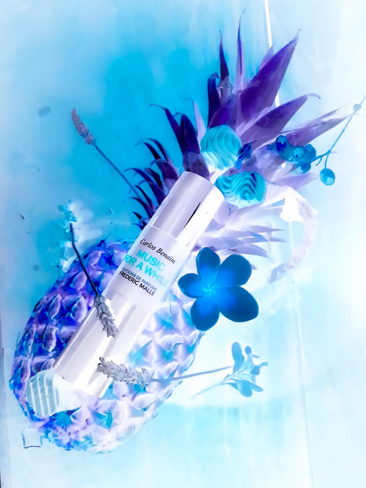 Důležité je, že Music for a while vůbec není ananasová vůně. Od začátku až do konce je to samá levandule. Silná zelená levandule s pačuli/mátovou atmosférou, vyhlazená a oslazená ethylmaltolem/ovocem v základu.