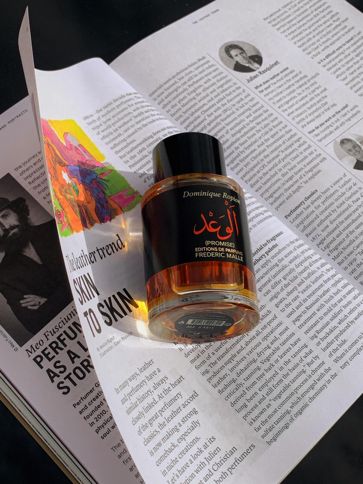 Promise má svrchní nótu s ostrým, kyselým, zeleným jablkem. Není to sladké jablko, které najdete v kolekci Hugo Boss, ne. Není to jablko, které Hugo Boss v létě poslal do Blanche. Tohle je jablko, které poslalo Sněhurku do podsvětí s jedinou vstupenkou na věčnost. Tmavé, opulentní, hutné, kyselé, nazelenalé jablko. V horním tónu lze vnímat i kořeněné doteky, které celou kompozici zatemňují a dodávají jí působivou sílu. Vrchní tóny jsou brutální, ale to, co následuje, je skutečně majestátní dílo. Ve střední fázi vůně vyniknou ony růžové tóny, které celému vonnému akordu dodávají vznešenou eleganci. Turecká a bulharská růže jsou vnímány s velkolepou kvalitou, s oním suchým, zemitým tónem, který dodává parfému úžasnou vážnost. Cypriol vždy doprovází a doplňuje tento aromatický poklad a dává o sobě vědět po celou dobu trvání vůně. Nakonec na kůži přetrvává jemná živočišná vůně, díky níž je vůně velmi mužná, sexy a svůdná. Mějte na paměti, že Promise vůbec není jednoduchá vůně, naopak je nesmírně komplexní, a v tom spočívá její velké tajemství a krása. Zdržte se jejího nákupu naslepo, zejména pokud jste s cypřišovou nótou dosud neexperimentovali. Není to žádný vtip.