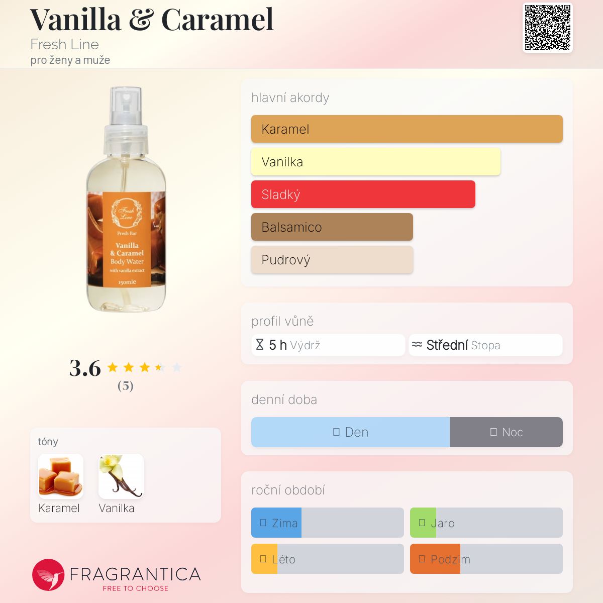 Vanilla & Caramel podle Fresh Line je Orientální Vanilla vůně pro ženy a muže. Vanilla & Caramel byl/a uveden/a v roce 2024.