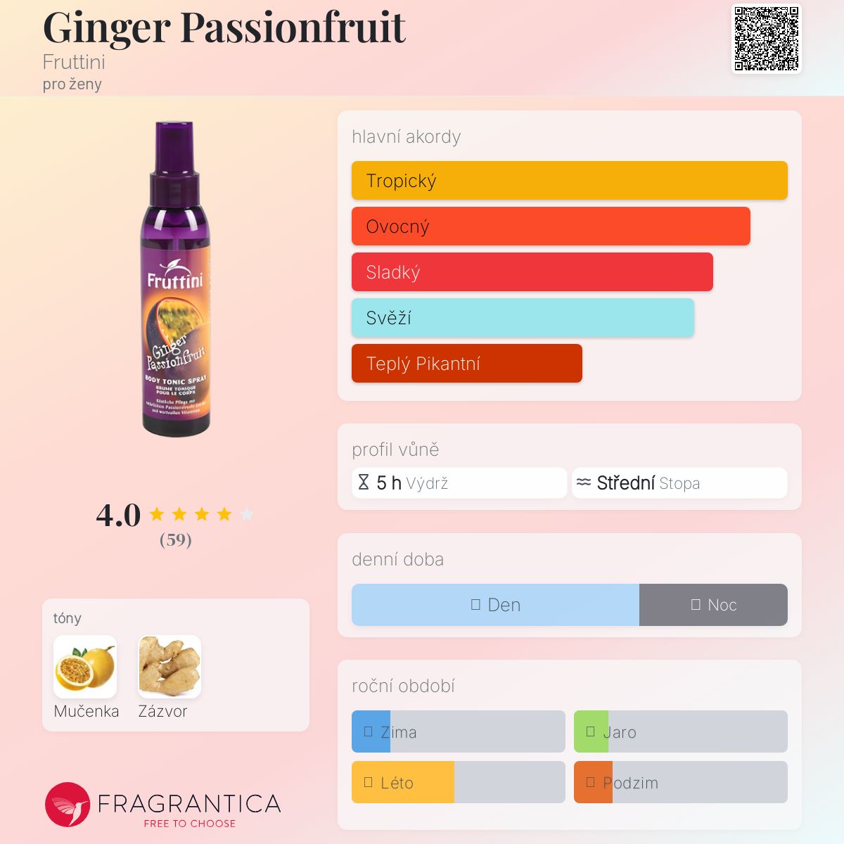 Ginger Passionfruit podle Fruttini je Aromatic Fruity vůně pro ženy. Ginger Passionfruit byla spuštěna během 2000.