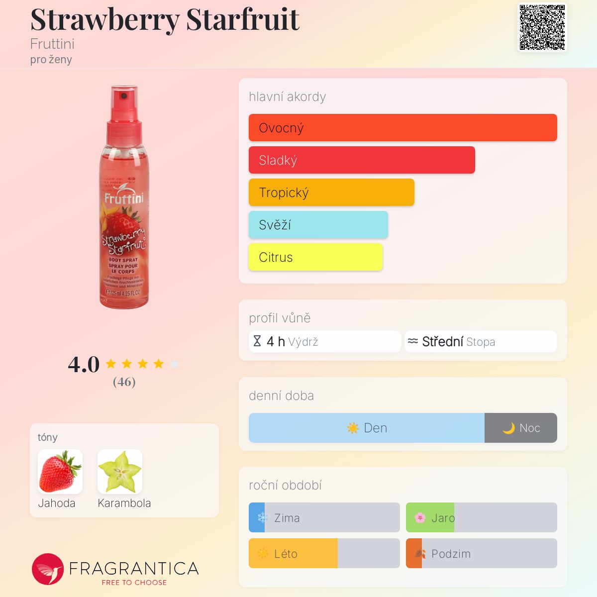 Strawberry Starfruit podle Fruttini je Floral Fruity vůně pro ženy. Strawberry Starfruit byl/a uveden/a v roce 2009.
