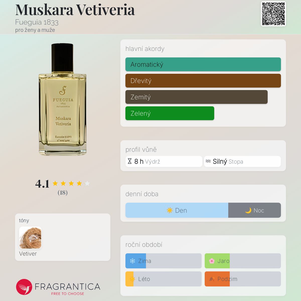 Muskara Vetiveria podle Fueguia 1833 je vůně pro ženy a muže. Muskara Vetiveria byl/a uveden/a v roce 2016. "Nosem" za touto vůní je Julian Bedel.
