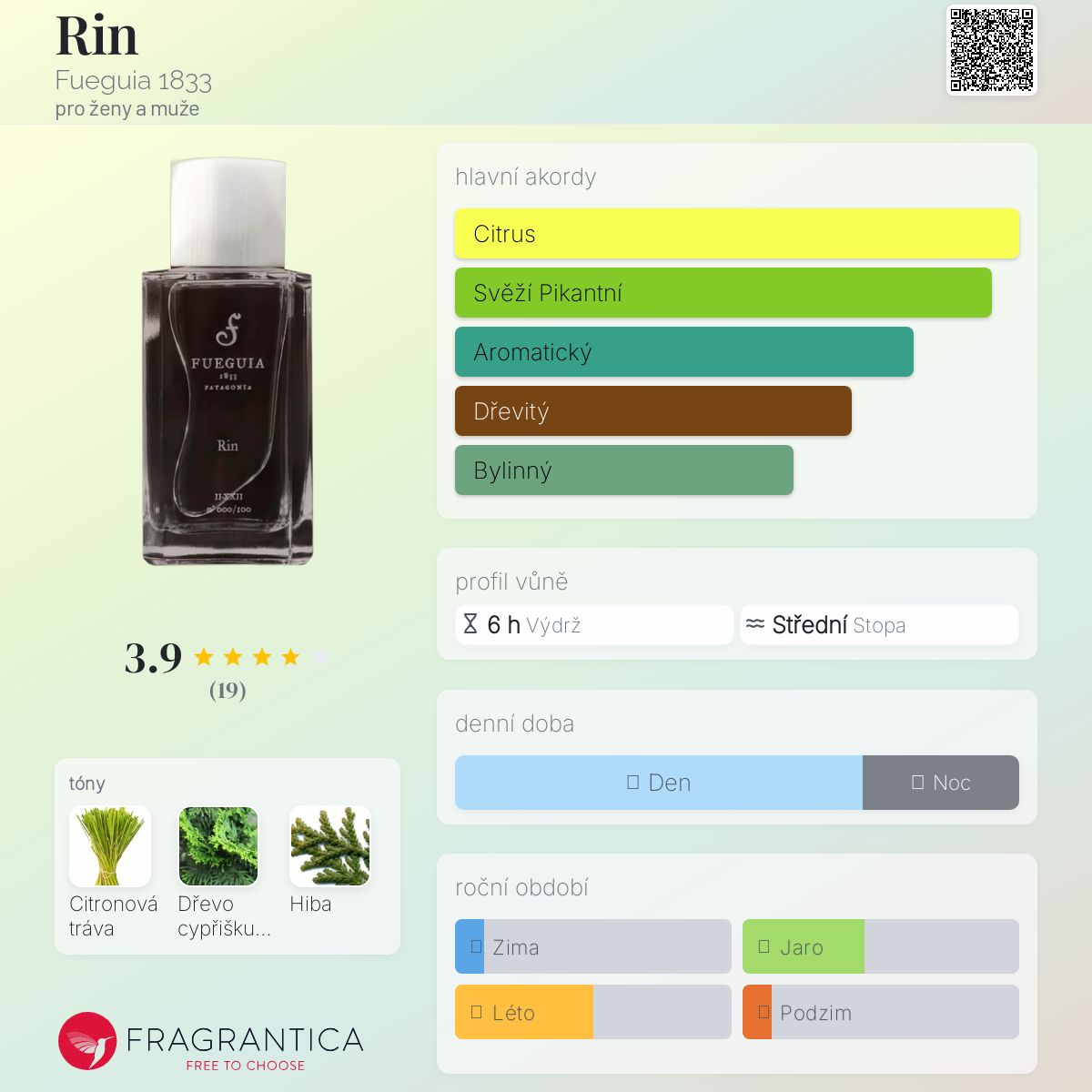 Rin podle Fueguia 1833 je vůně pro ženy a muže. Rin byl/a uveden/a v roce 2020. "Nosem" za touto vůní je Julian Bedel.