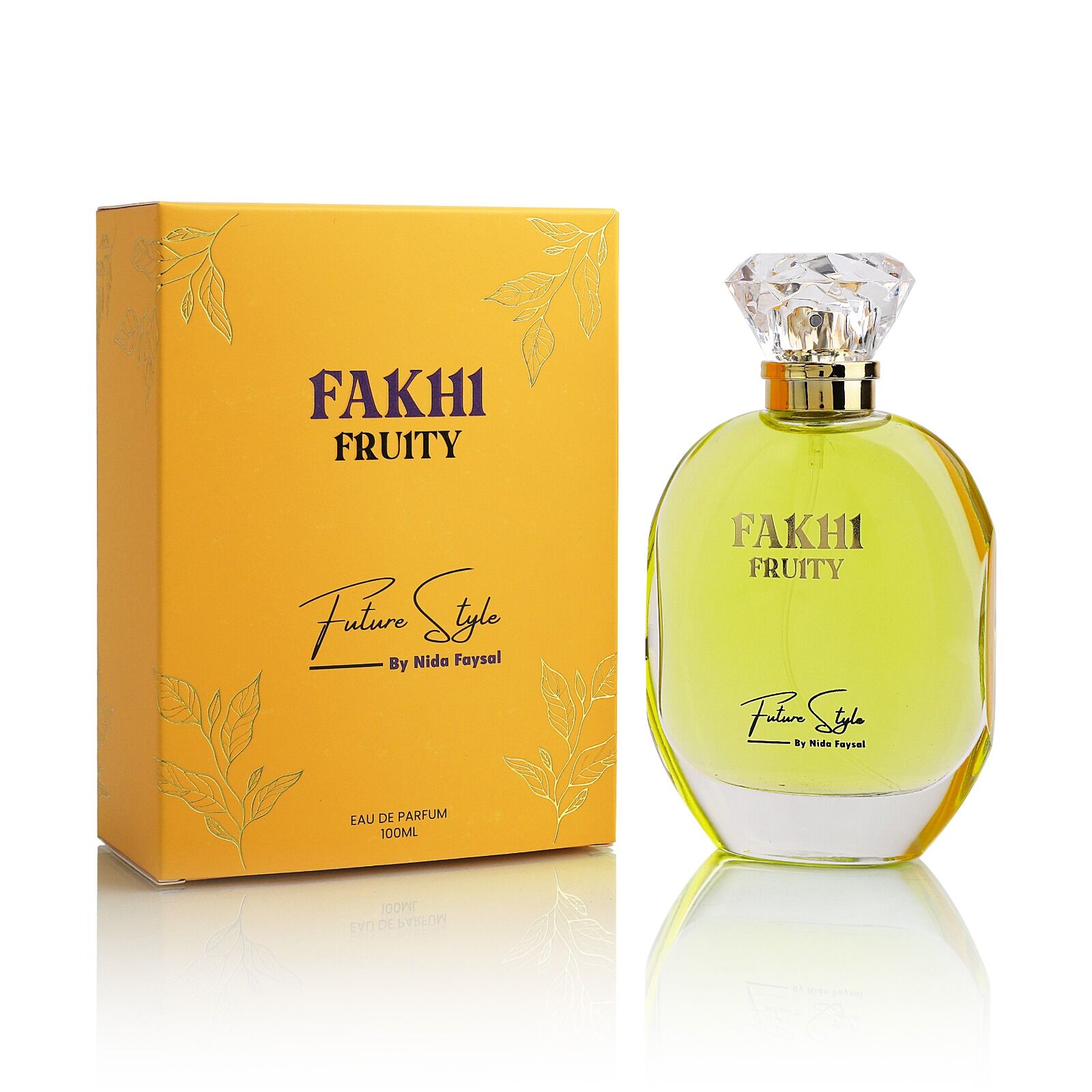 Fakhi Fruity podle Future Style je Floral Fruity vůně pro ženy. Toto je nová vůně. Fakhi Fruity byl/a uveden/a v roce 2024. "Nosem" za touto vůní je Mane. Vrchní tóny jsou Sedmikráska, Aloe Vera a Frézie; střední tón jeHeřmánek ; základní tóny jsou Mořské tóny, Švestka a Květiny.