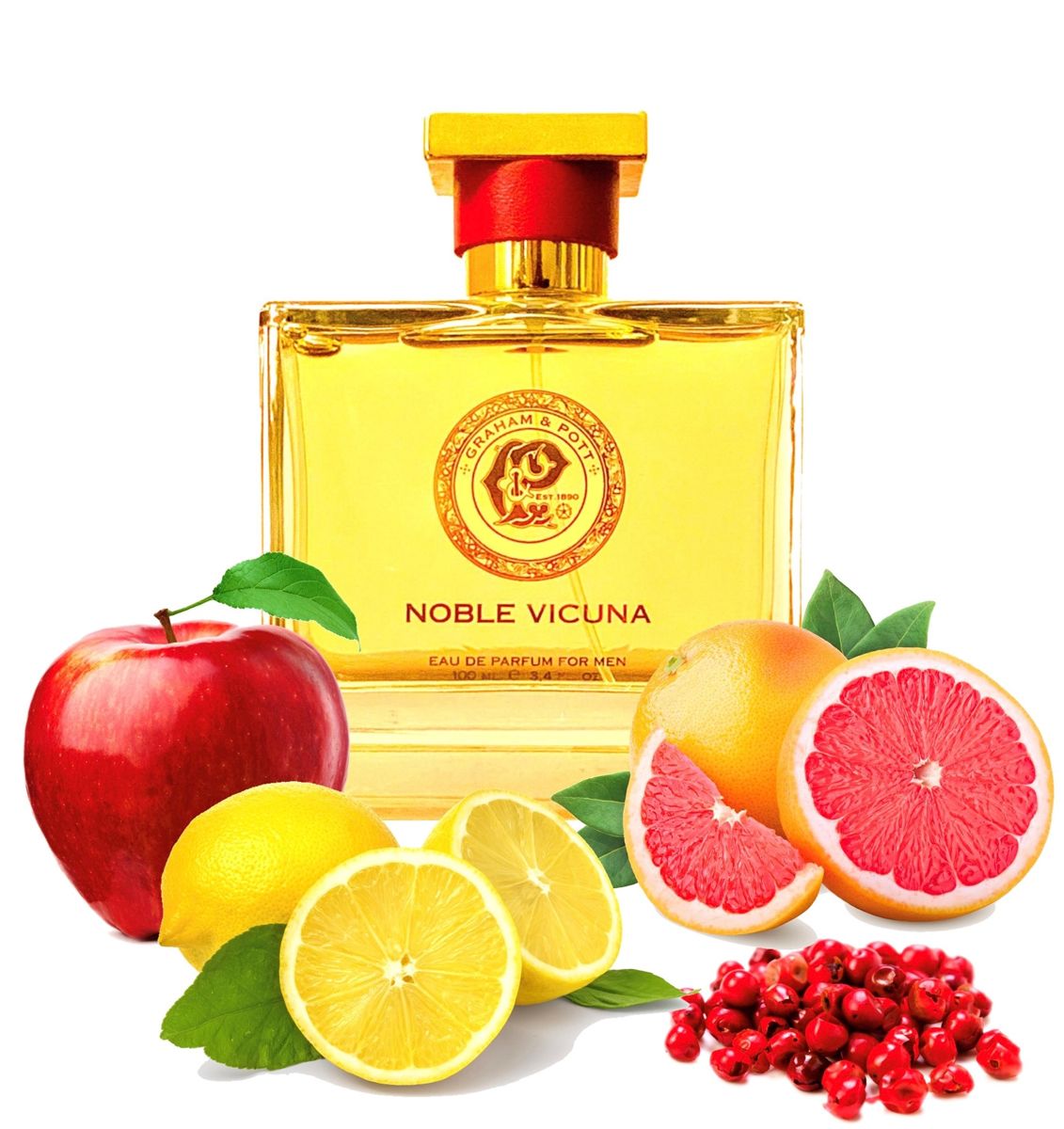 Noble Vicuna podle GRAHAM & POTT je Woody Spicy vůně pro muže. Noble Vicuna byl/a uveden/a v roce 2019. Vrchní tóny jsou Jablko a Růžový pepř; střední tóny jsouSkořice a Rozmarýn ; základní tóny jsou Agarové dřevo (oud) a Dřevité tóny.