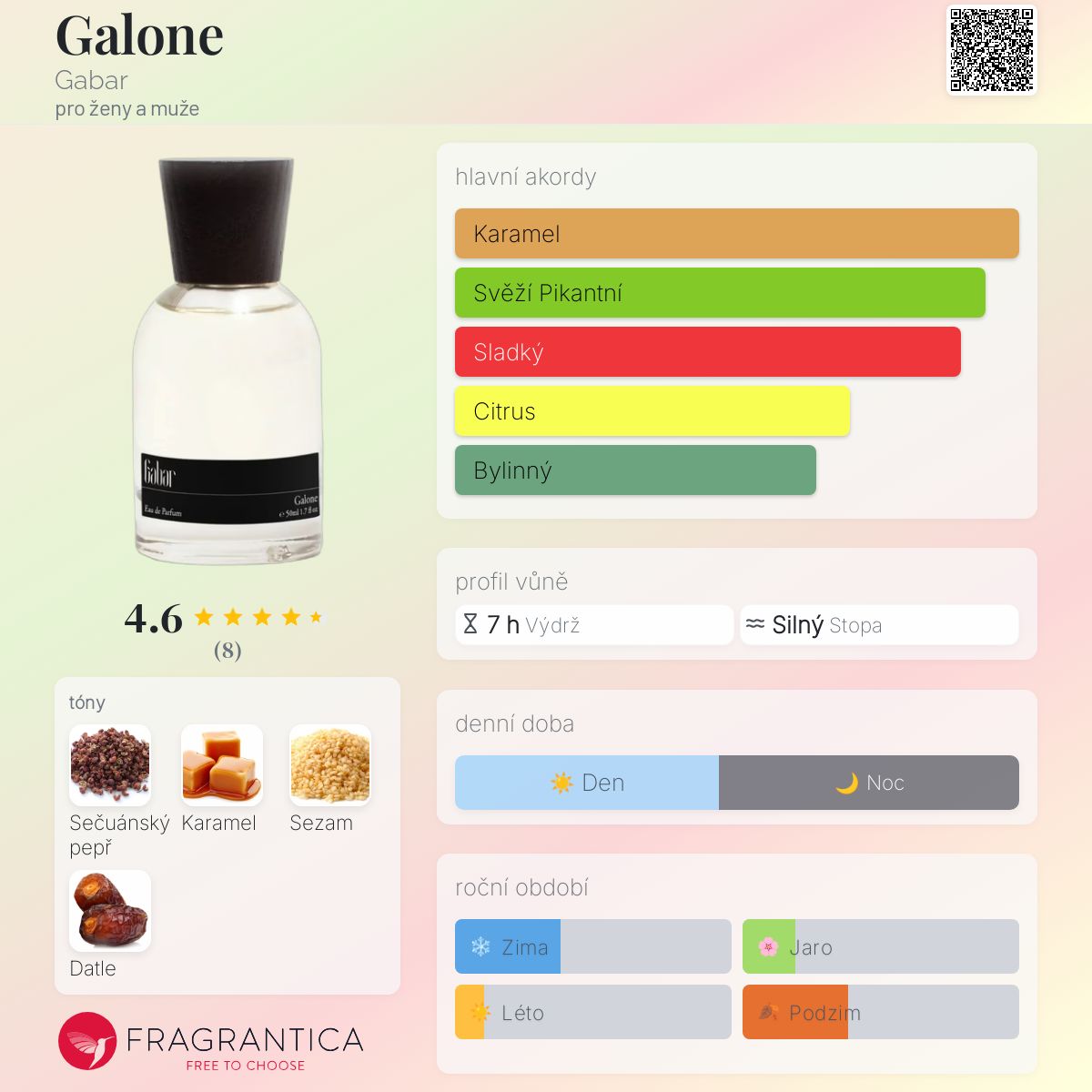 Galone podle Gabar je vůně pro ženy a muže. Toto je nová vůně. Galone byl/a uveden/a v roce 2025. "Nosem" za touto vůní je Ezra Lloyd‑Jackson.