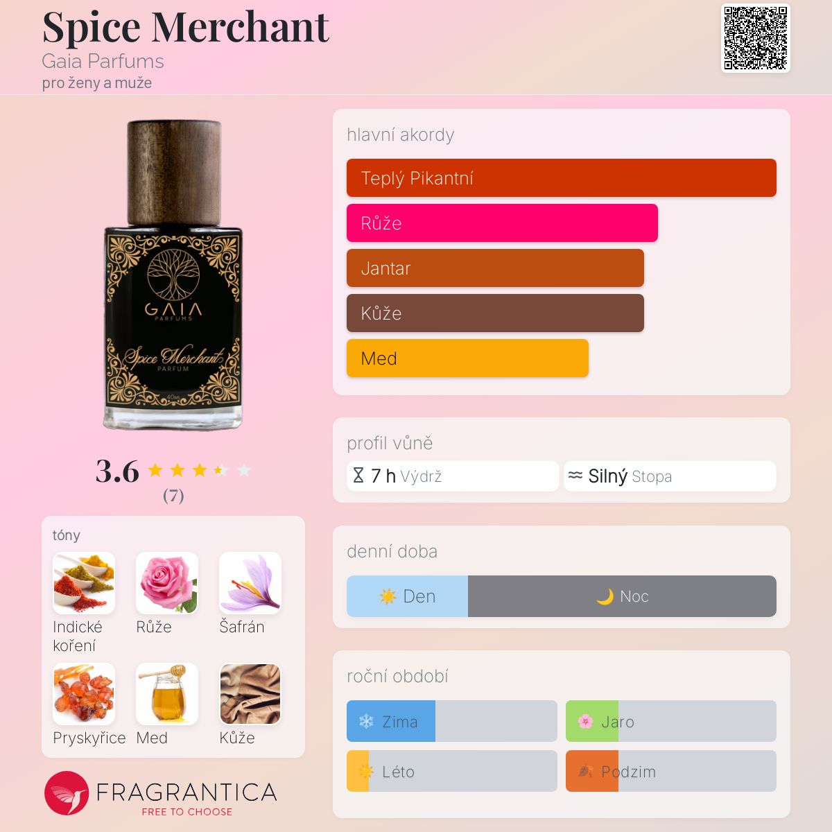 Spice Merchant podle Gaia Parfums je Leather vůně pro ženy a muže. Spice Merchant byl/a uveden/a v roce 2022. "Nosem" za touto vůní je Anas Sabrani.