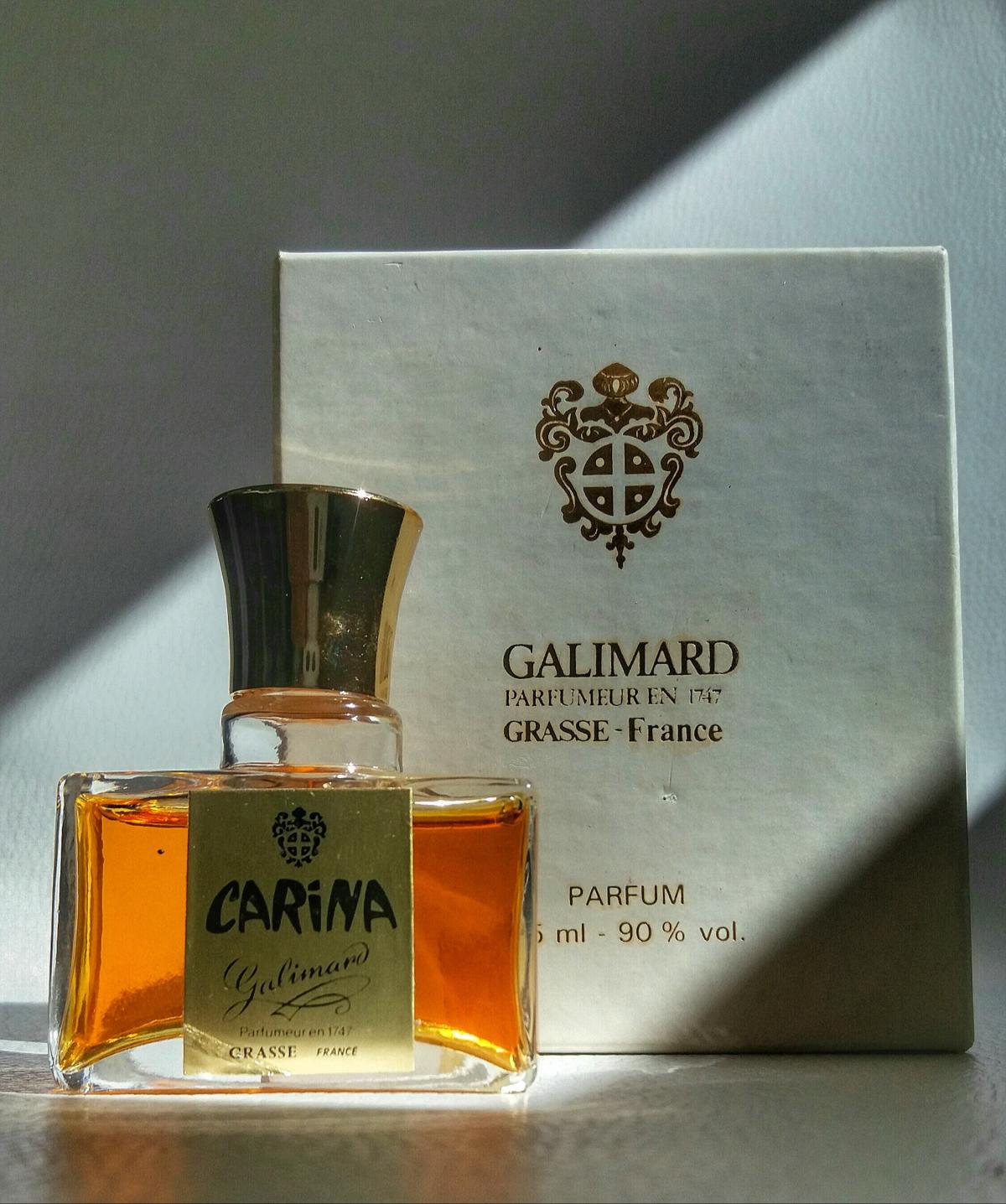 Carina podle Galimard je Chypre Fruity vůně pro ženy. Carina byl/a uveden/a v roce 1960. Vrchní tóny jsou Broskev a Máta; střední tóny jsouKoriandr, Růže, Ananas a Maliny ; základní tóny jsou Pižmo, Dubový mech a Virginský cedr.