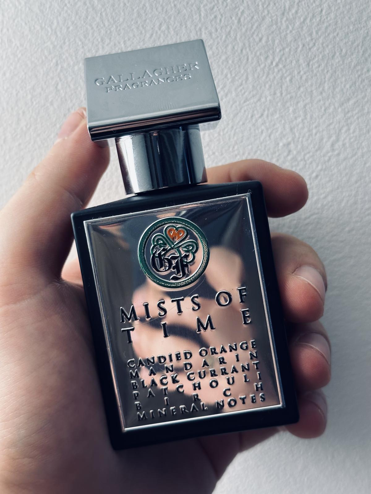 Mists of Time podle Gallagher Fragrances je Citrus Gourmand vůně pro ženy a muže. Mists of Time byl/a uveden/a v roce 2022. "Nosem" za touto vůní je Daniel Gallagher. Vrchní tóny jsou Kandovaný pomeranč, Limetková kůra, Mandarinka a Bergamot; střední tóny jsouCypřiš, Černý rybíz, Pačuli, Bříza, Kůže a Tabák ; základní tóny jsou Minerální tóny, Pižmo a Vanilka.