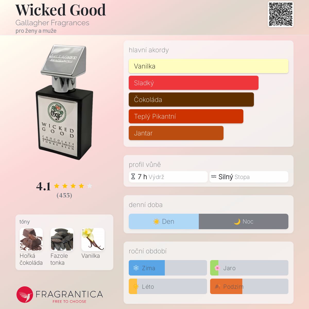 Wicked Good podle Gallagher Fragrances je Orientální Vanilla vůně pro ženy a muže. Wicked Good byl/a uveden/a v roce 2019. "Nosem" za touto vůní je Daniel Gallagher.
