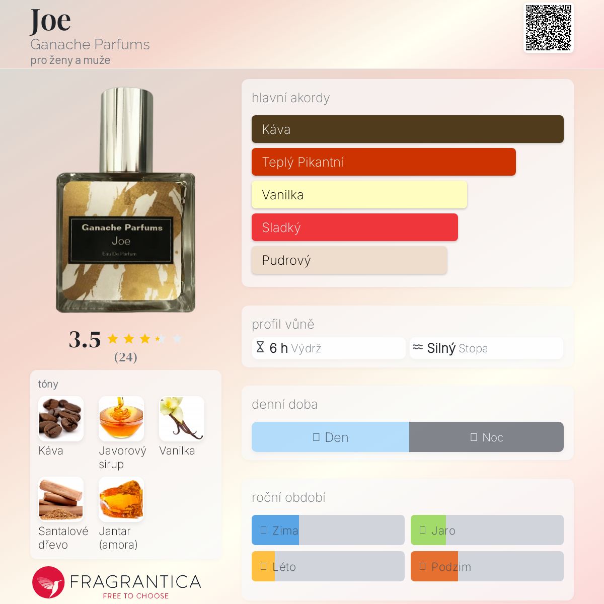 Joe podle Ganache Parfums je Orientální vůně pro ženy a muže. Joe byl/a uveden/a v roce 2017. "Nosem" za touto vůní je Jarekhye Covarrubias.