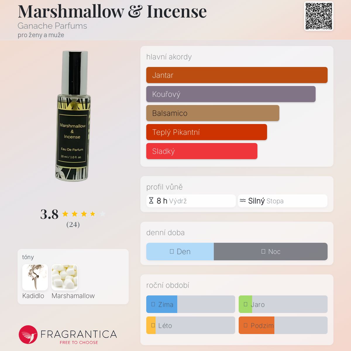 Marshmallow & Incense podle Ganache Parfums je vůně pro ženy a muže. "Nosem" za touto vůní je Jarekhye Covarrubias.