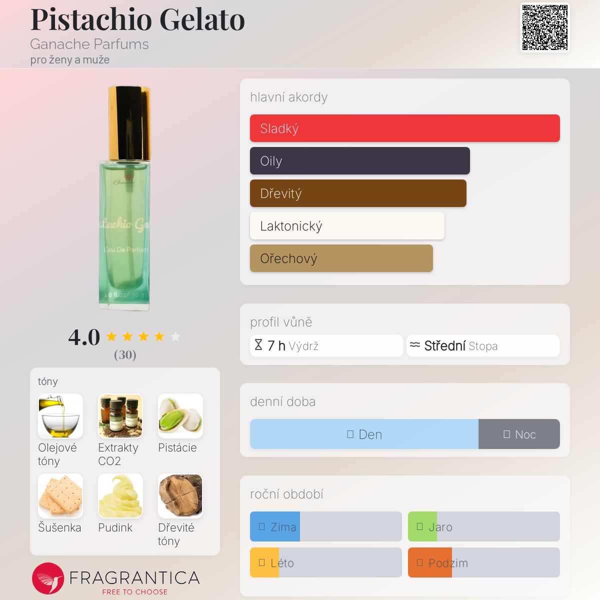 Pistachio Gelato podle Ganache Parfums je Orientální Vanilla vůně pro ženy a muže. Pistachio Gelato byl/a uveden/a v roce 2019. "Nosem" za touto vůní je Jarekhye Covarrubias.