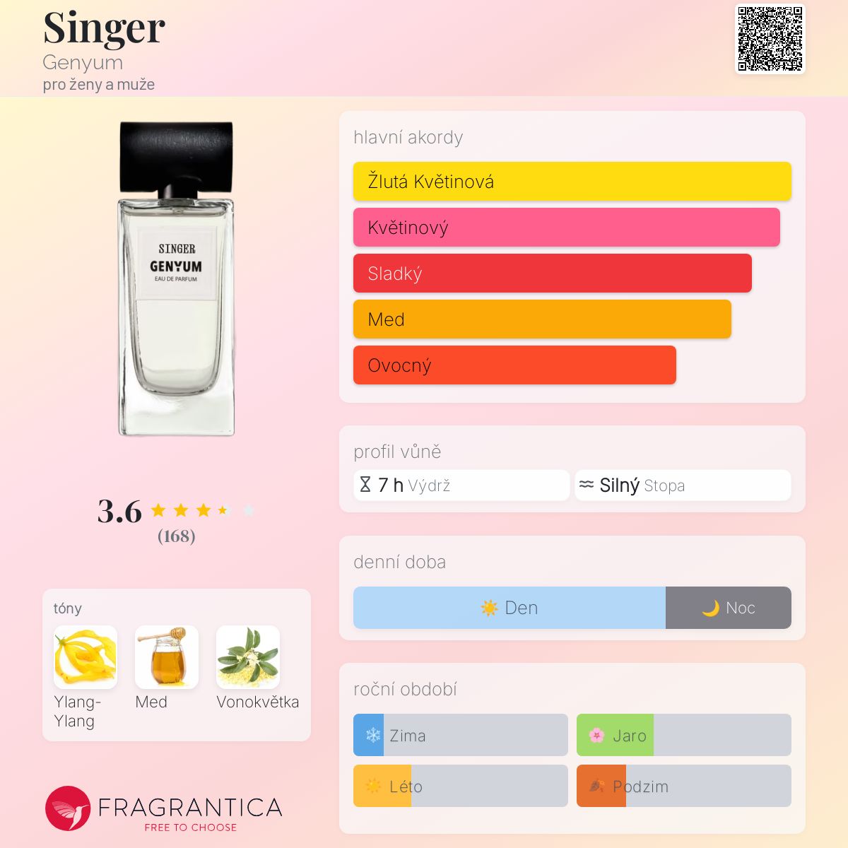 Singer podle Genyum je Floral vůně pro ženy a muže. "Nosem" za touto vůní je Gaël Montero.