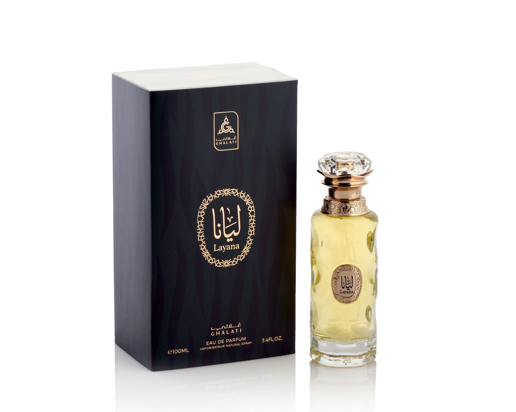 Layana podle Ghalati je Orientální Vanilla vůně pro ženy. Layana byl/a uveden/a v roce 2022. "Nosem" za touto vůní je Shadi Samra. Vrchní tóny jsou Broskev, Maliny a Bergamot; střední tóny jsouKadidlo a Čokoláda ; základní tóny jsou Kůže, Pižmo, Vanilka a Pačuli.