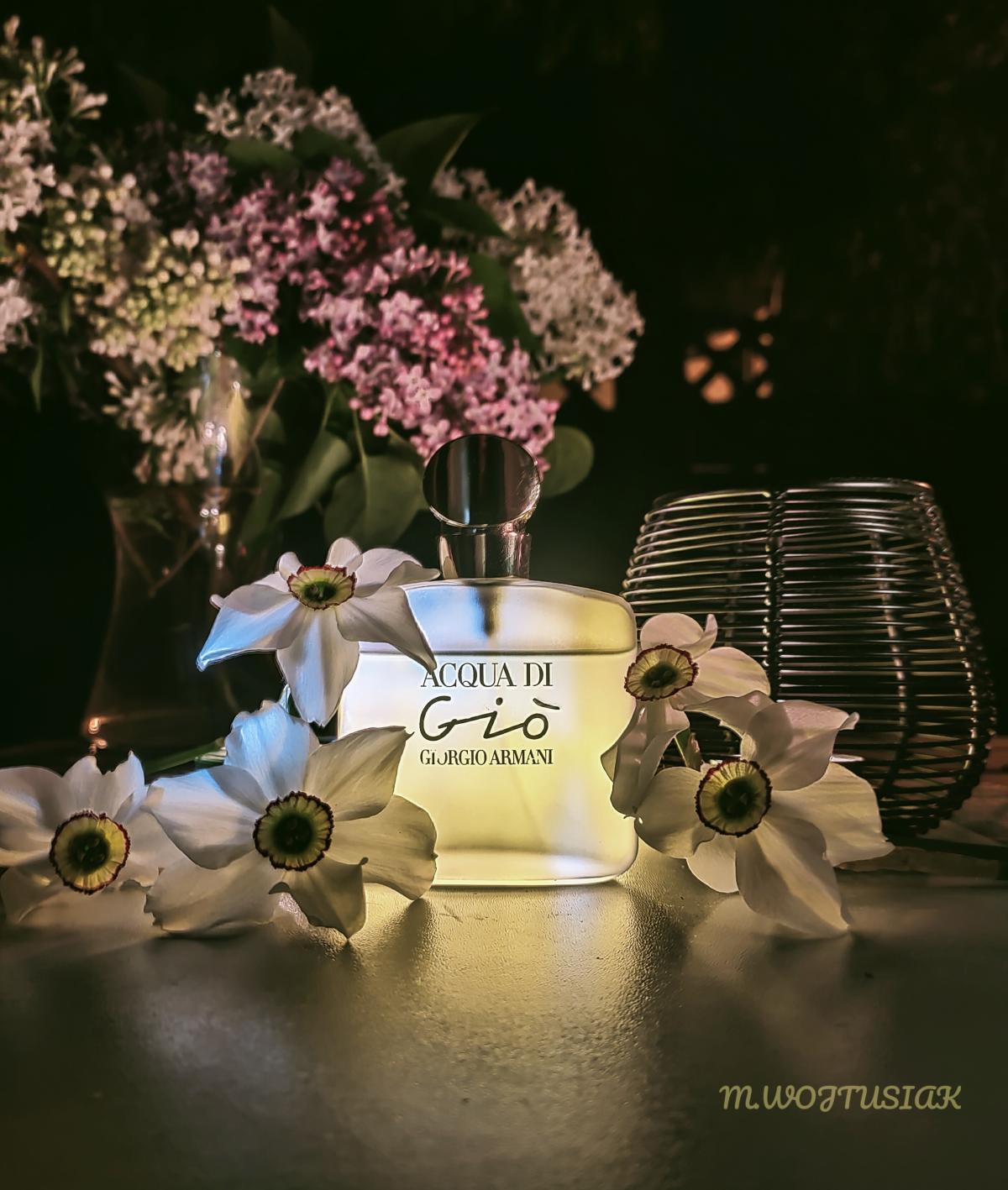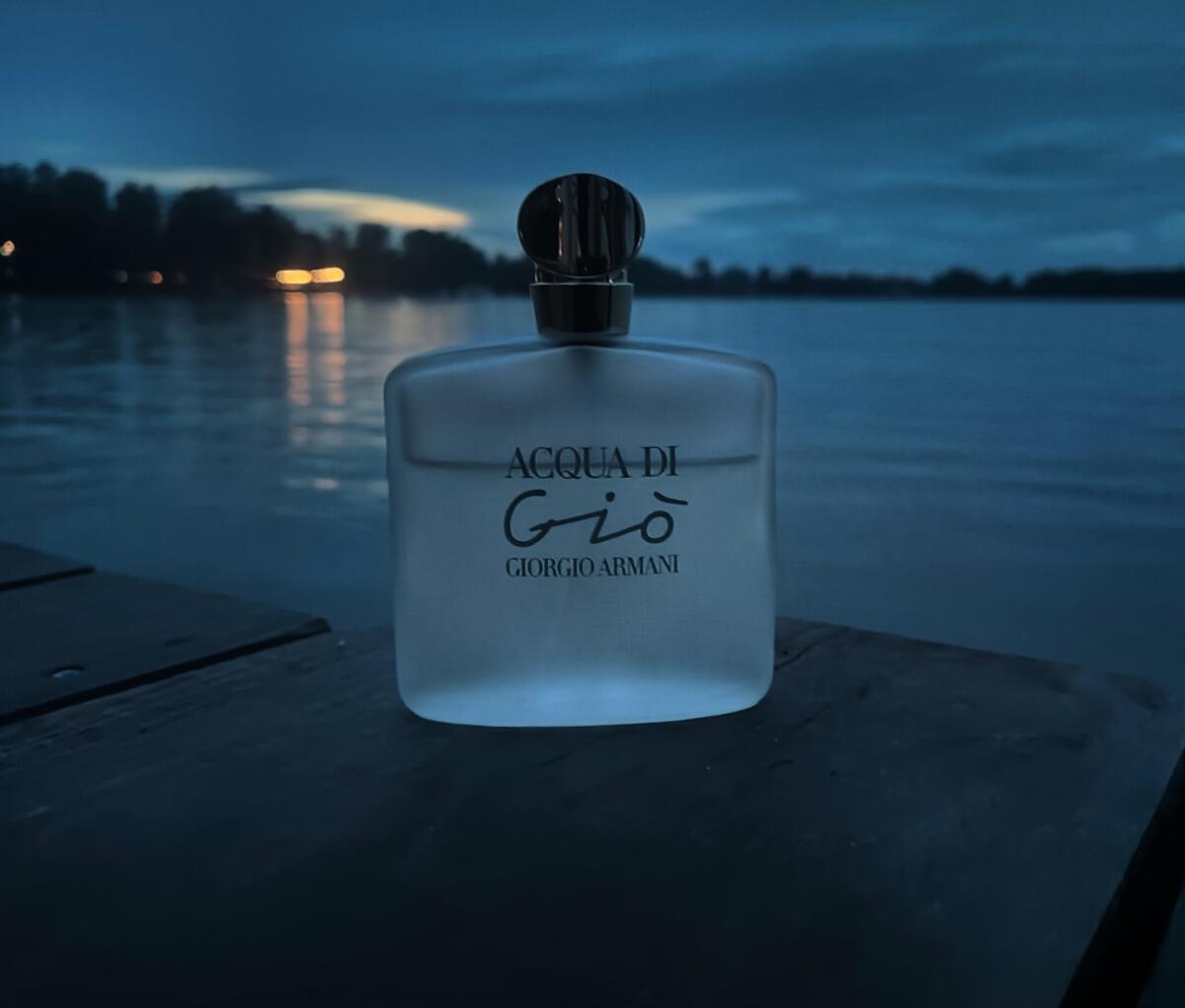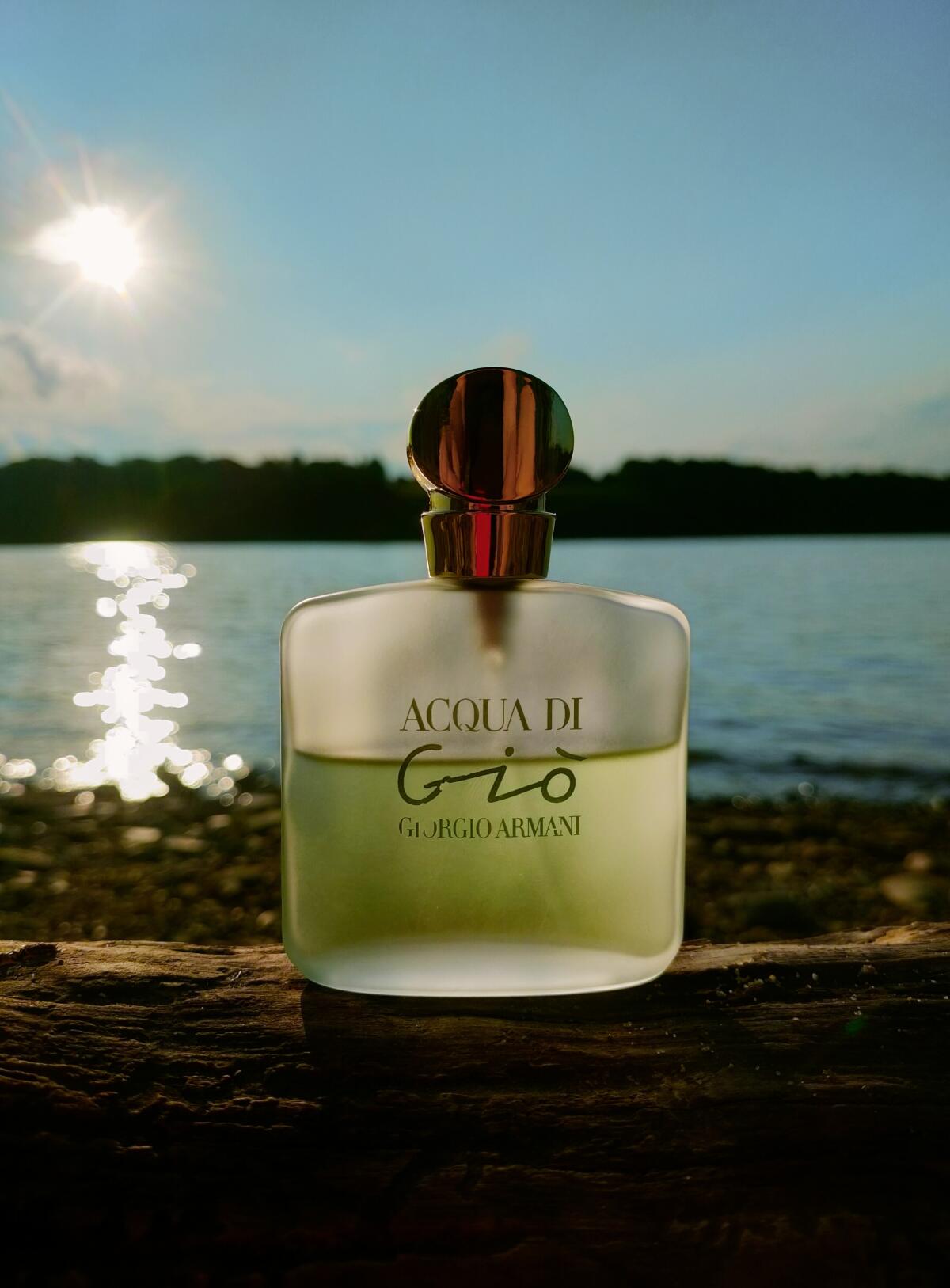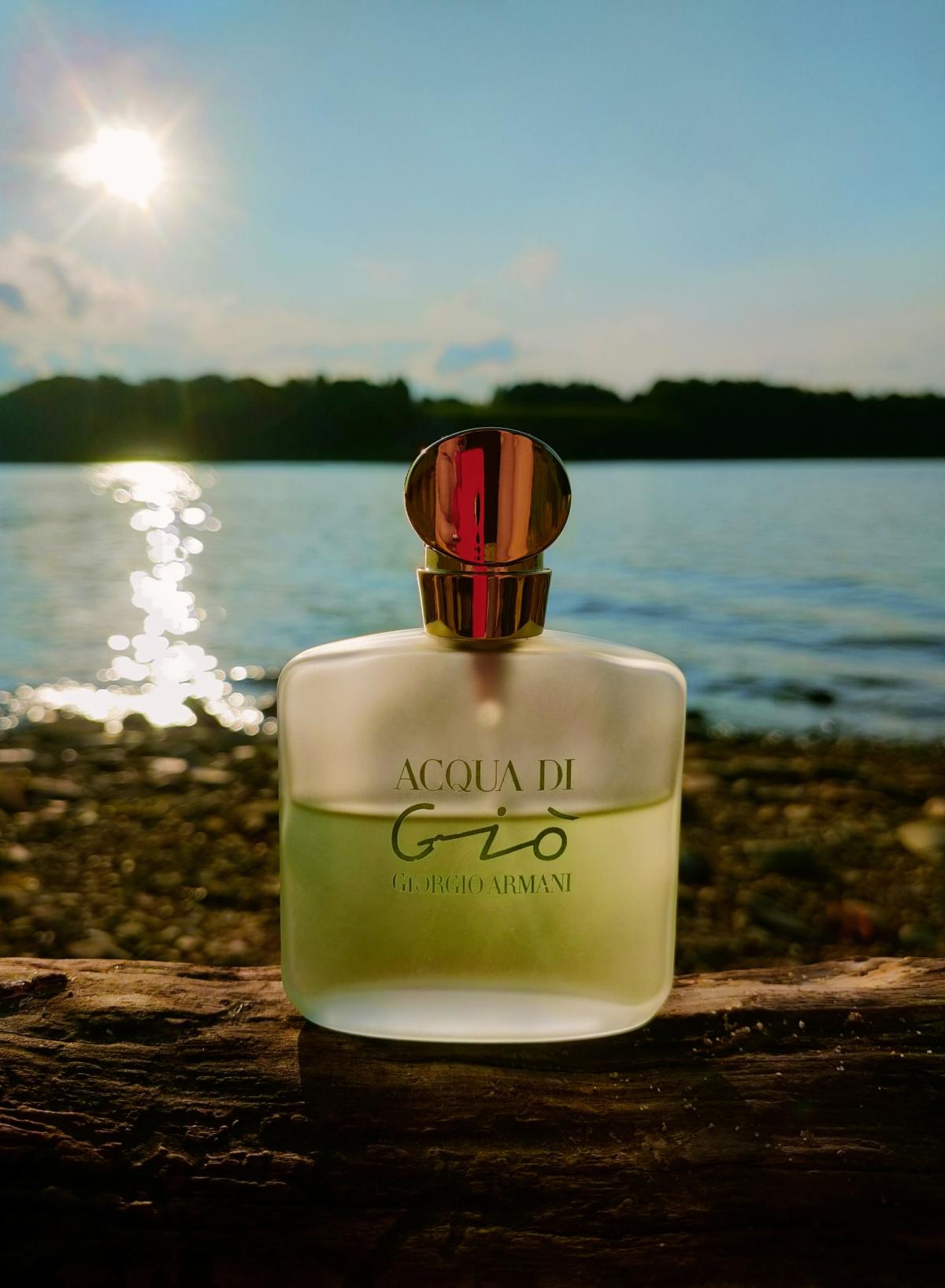 Acqua di Gio podle Giorgio Armani je Floral Fruity vůně pro ženy. Acqua di Gio byl/a uveden/a v roce 1995. "Nosem" za touto vůní je Edouard Fléchier. Vrchní tóny jsou Pivoňka, Pižmová vodka, Ananas, Citrón, Broskev, Banánový list a Fialka; střední tóny jsouKonvalinka, Hyacint, Lilie, Jasmín, Frézie, Calone, Ylang-Ylang a Růže ; základní tóny jsou Pižmo, Cedr, Santalové dřevo, Jantar (ambra) a Styrax.
