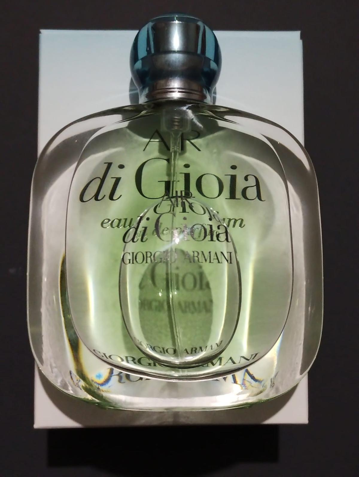Air di Gioia podle Giorgio Armani je Chypre Floral vůně pro ženy. Air di Gioia byl/a uveden/a v roce 2016. Vrchní tóny jsou Sůl, Neroli a Mandarinka; střední tóny jsouPivoňka, Pomerančový květ a Ylang-Ylang ; základní tóny jsou Cypřiš, Mech, Pačuli a Kašmírové dřevo.