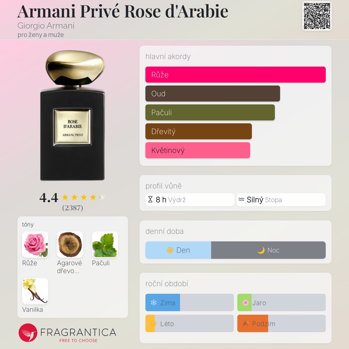 Armani Privé Rose d'Arabie podle Giorgio Armani je Orientální Floral vůně pro ženy a muže. Armani Privé Rose d'Arabie byl/a uveden/a v roce 2010.