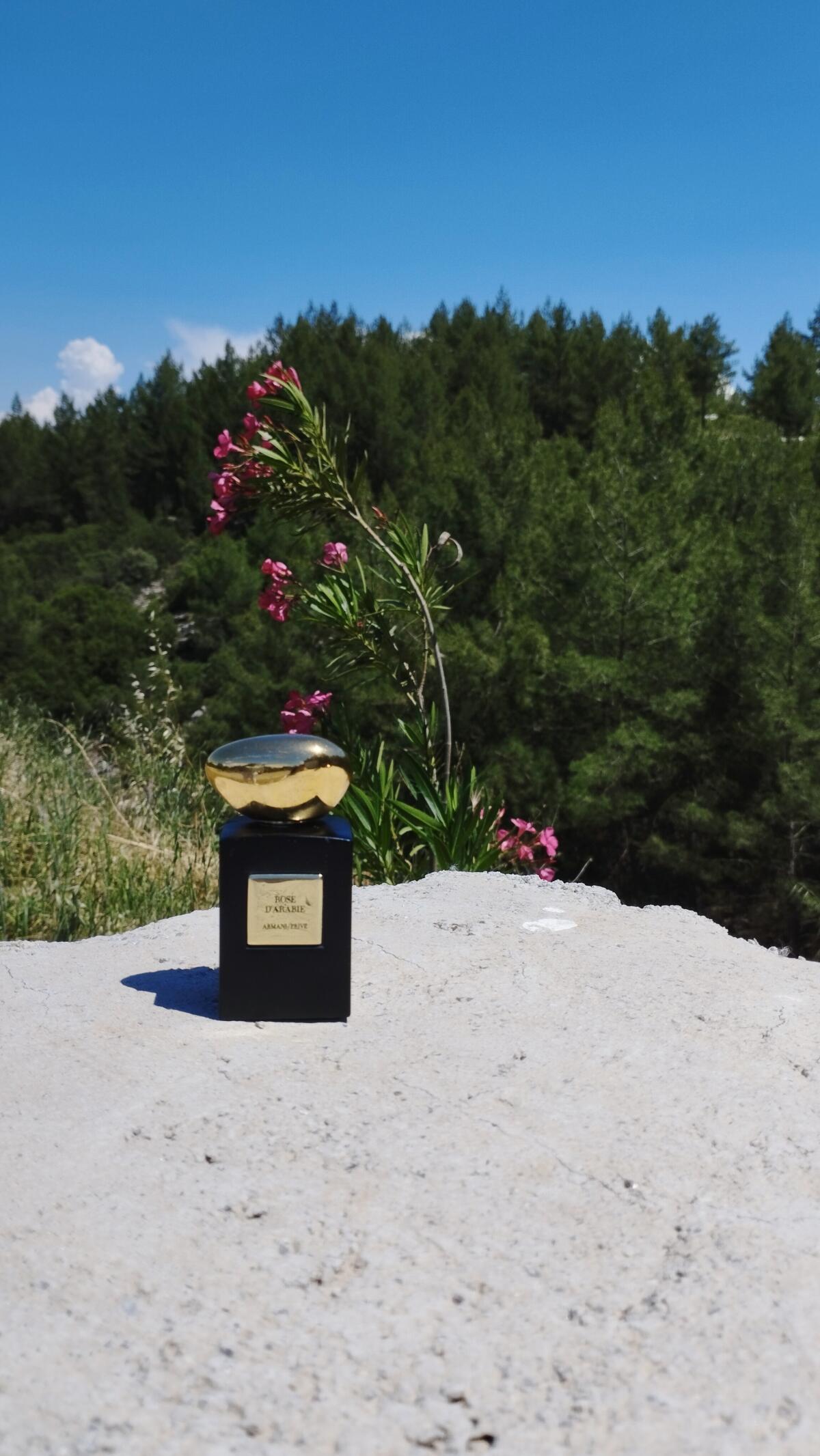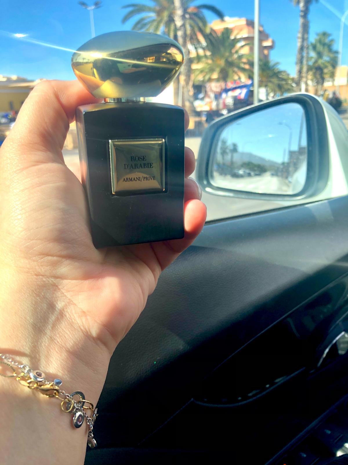 Poté, co mi došlo několik lahviček mé oblíbené a charakteristické vůně Rose Alexandrie od Armani Prive, jsem si řekla, že se podívám do obchodu a přivoním si i k jiným vůním. Narazila jsem na tento flakon: Rose d'Arabie. Přivoněla jsem si k ní.