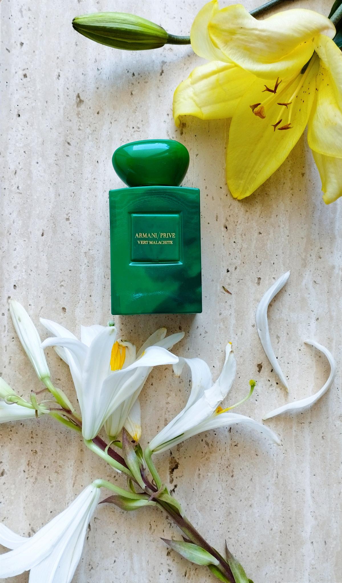 Tento parfém jsem vždycky měla pod pokličkou, když jsem si přivoněla k různým parfémům z řady Prive od Giorgia Armaniho, nikdy mě žádný z nich příliš nenadchl a podle názvu "Vert Malachite" jsem si myslela, že to bude zelený, a ne bílý květinový parfém. Jak moc jsem se mýlila!