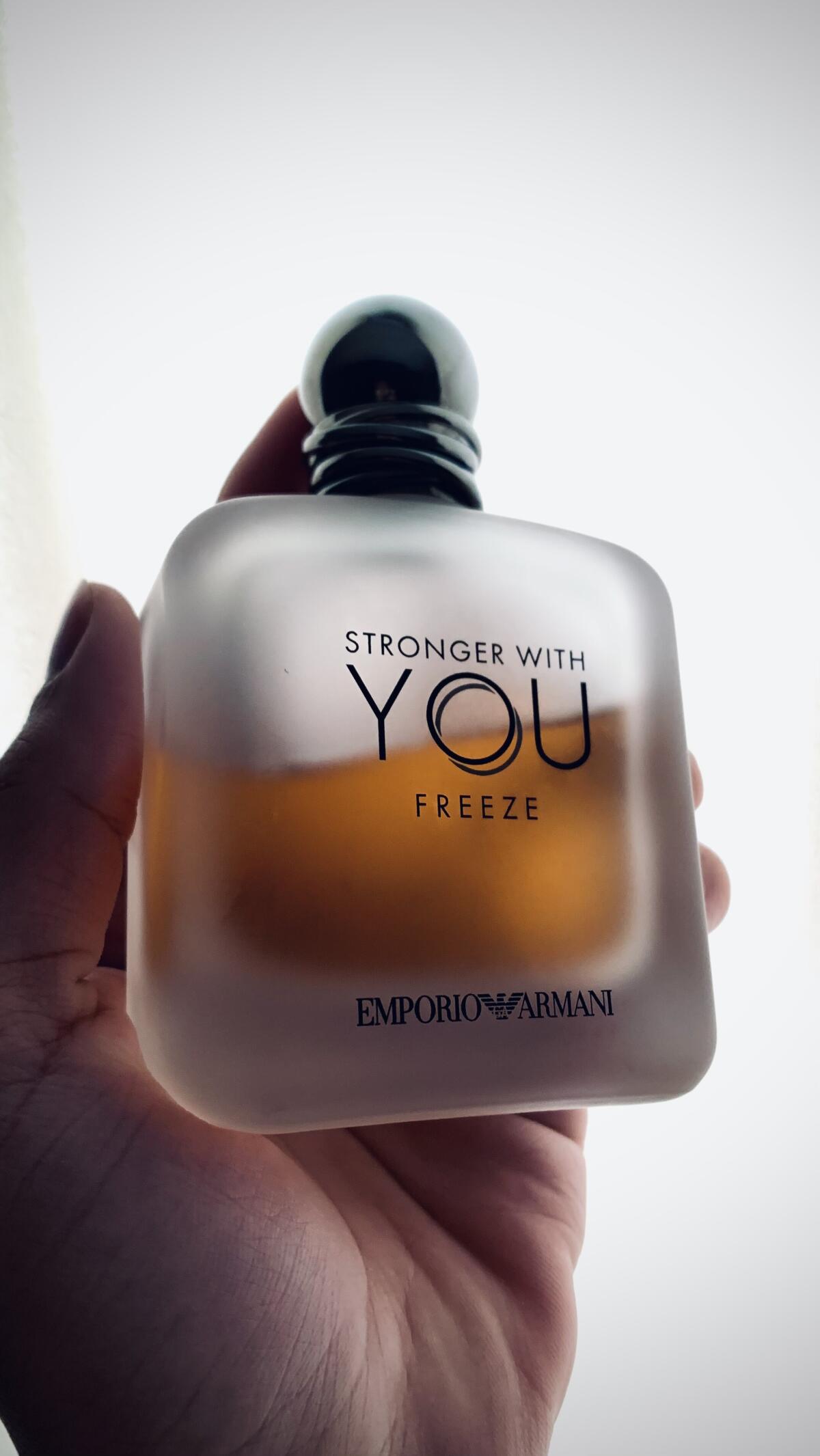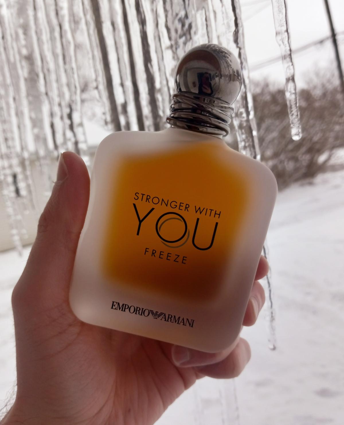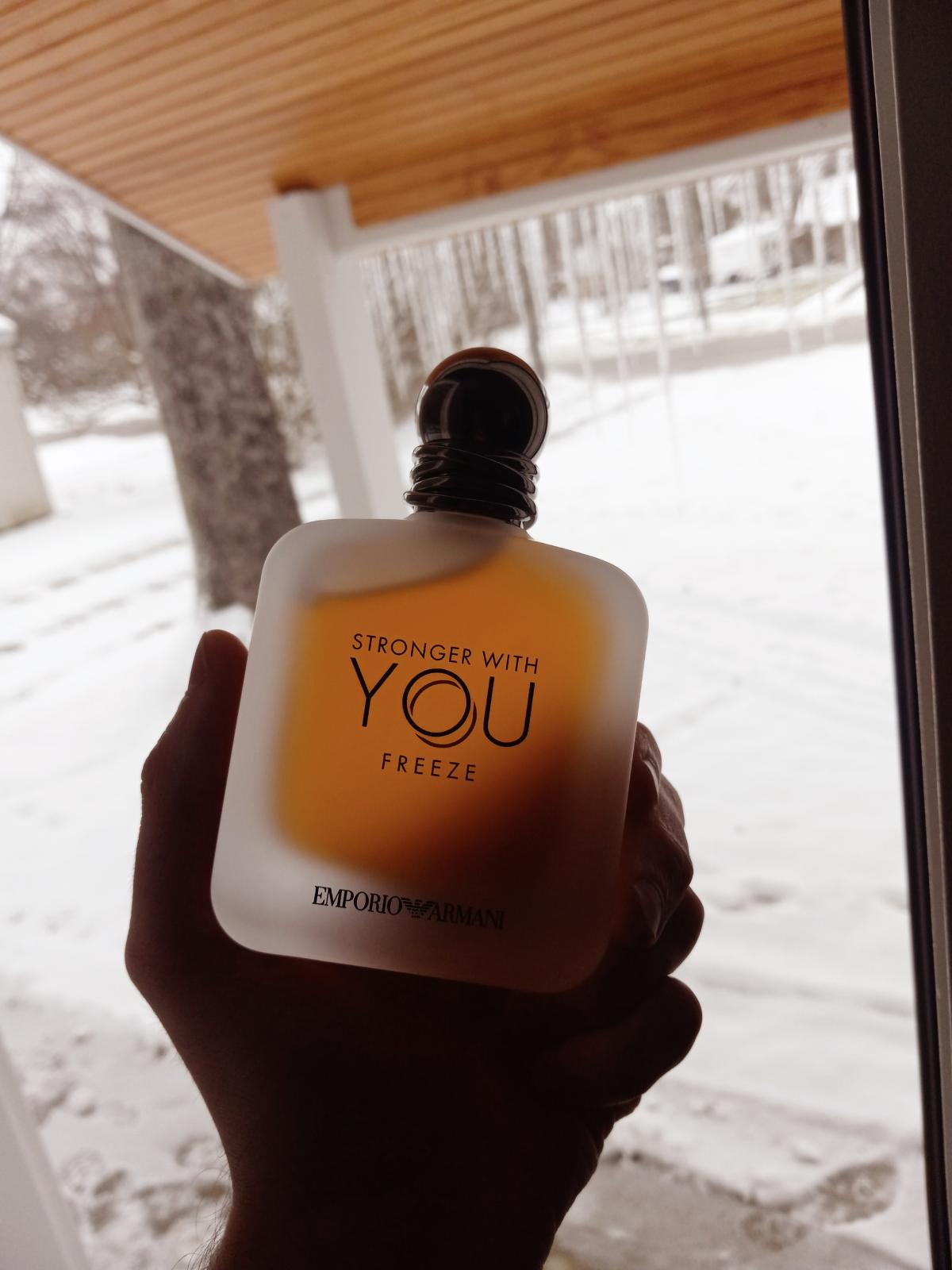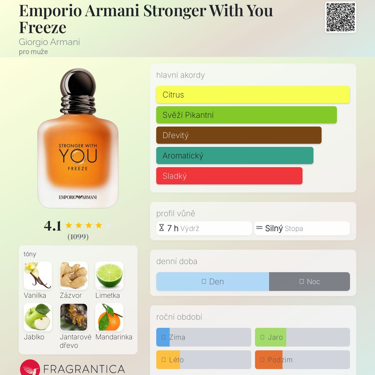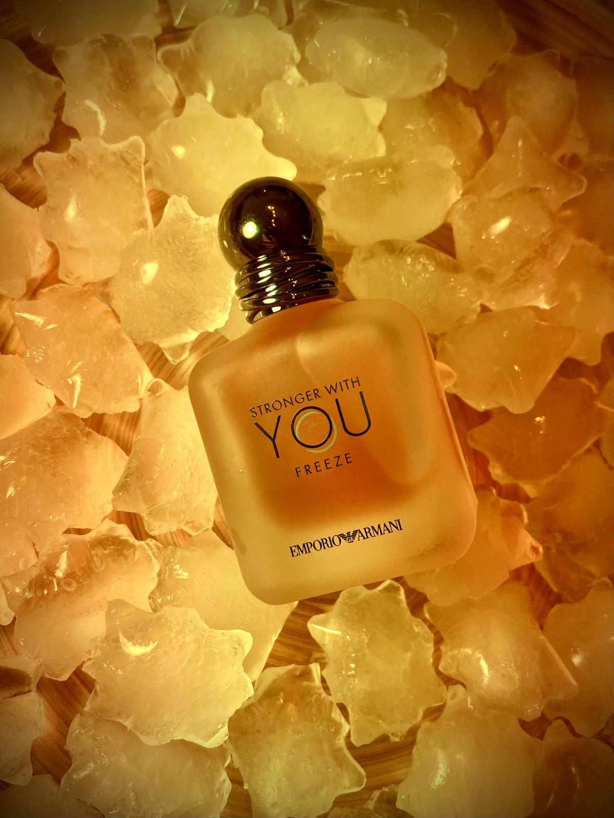 Emporio Armani Stronger With You Freeze podle Giorgio Armani je Aromatic Fougere vůně pro muže. Emporio Armani Stronger With You Freeze byl/a uveden/a v roce 2020. Vrchní tóny jsou Zázvor, Limetka, Jablko a Mandarinka; střední tóny jsouKardamom, Levandule, Bourbonské geránium a Šalvěj ; základní tóny jsou Bourbonská vanilka, Jantarové dřevo, Kandované kaštany a Guajakové dřevo.