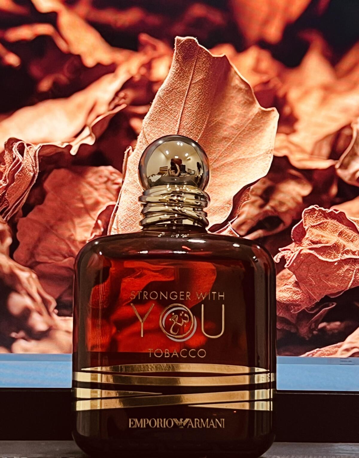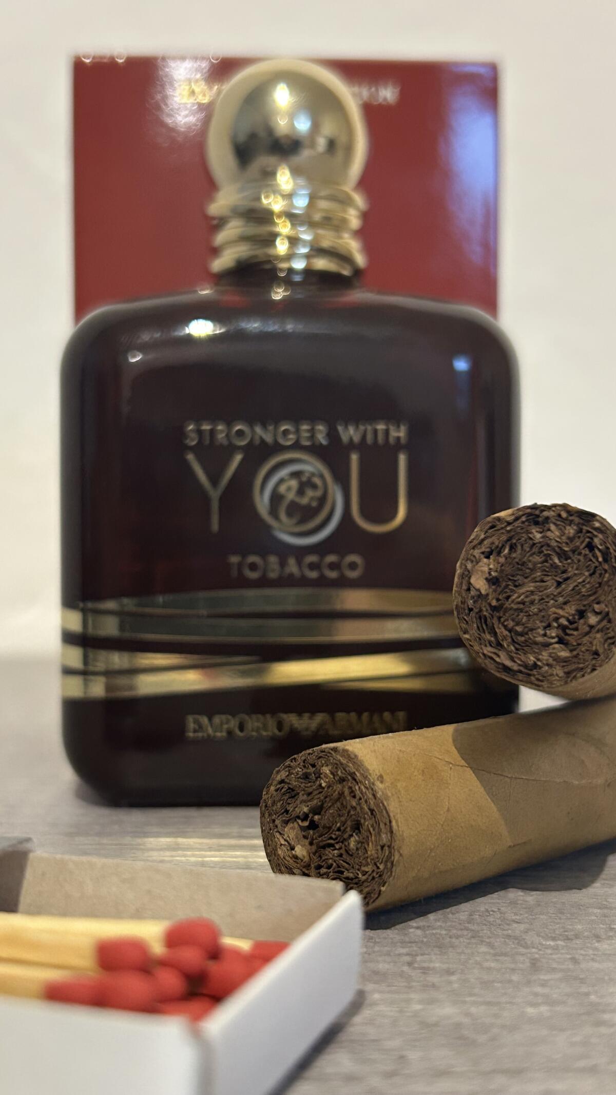 Emporio Armani Stronger With You Tobacco podle Giorgio Armani je Orientální Spicy vůně pro muže. Toto je nová vůně. Emporio Armani Stronger With You Tobacco byl/a uveden/a v roce 2024. Vrchní tóny jsou Růžový pepř, Černý pepř, Kardamom, Elimi a Šalvěj; střední tóny jsouTabák, List skořice, Kaštan a Chilli papričky ; základní tóny jsou Bourbonská vanilka, Jantar (ambra), Benzoin a Guajakové dřevo.