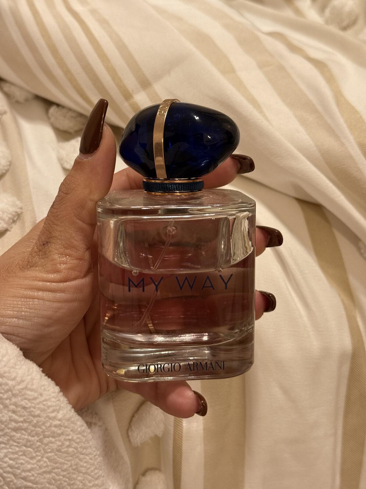 Moje Way byla ta další vzácnost jménem Gió, ta tuberóza zakalená světlem, to byla radost z lahve. Také erotický pudr se vzpomínkami na USB porty, který byl Emporio Armani. My Way byl ten dřevitě-kořeněný guláš Mania nebo Sensi, počin, který mísil orientální tóny s akordy spížní syrovosti. Tohle je My Way, ale svým způsobem chci vypadat jako všichni ostatní, svým způsobem jsem influencer a ani se mi to nedaří.