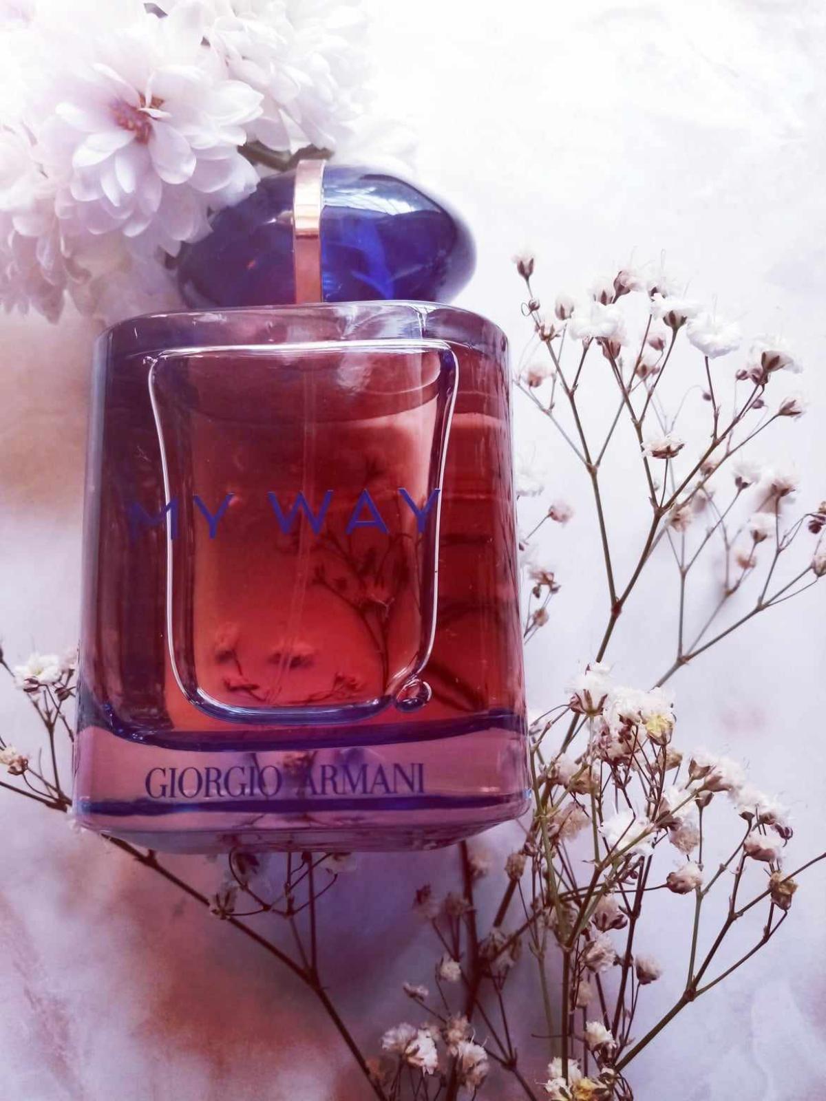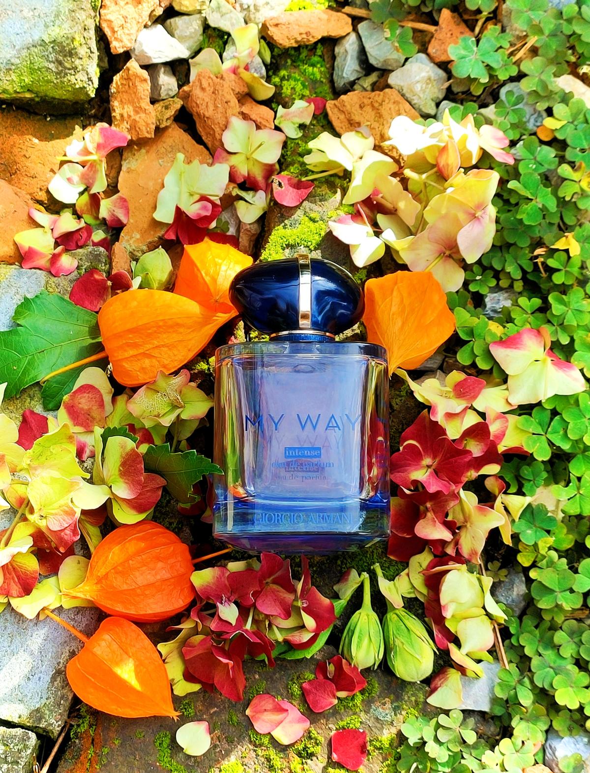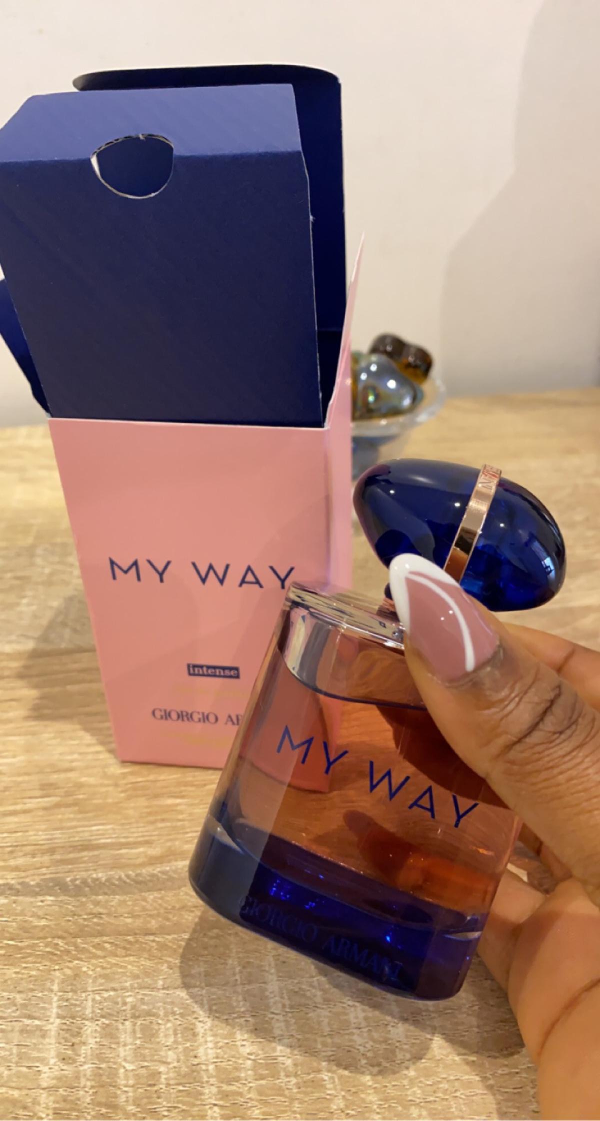 My Way se na mé kůži stává poněkud nakyslou a ostrou při vysychání, zatímco My Way Intense vysychá jako krémová, tělnatá, sladká tuberóza, tónovanější a vyváženější než originál. Stále je to však zářivá tuberóza, navzdory dřevu ne příliš těžká, temná a noční, s nálepkou "jarní" jako svou vlajkou. Po několika hodinách, v pozdním sušení, se květinová část zjemňuje, aniž by zmizela, a ustupuje příjemnému závěru ze santalového dřeva s vanilkou.