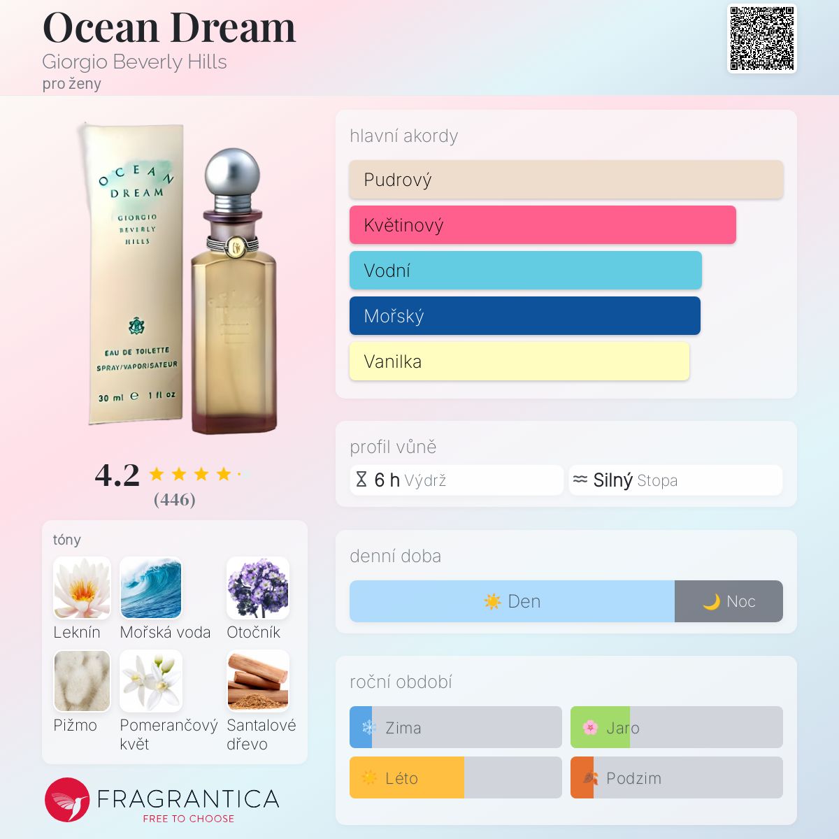 Ocean Dream podle Giorgio Beverly Hills je Floral vůně pro ženy. Ocean Dream byl/a uveden/a v roce 1996. "Nosem" za touto vůní je Alberto Morillas.