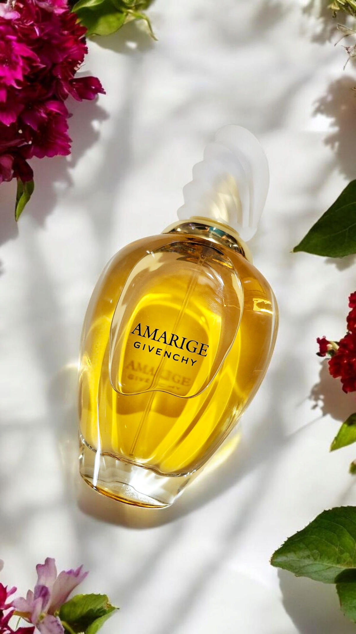 Amarige podle Givenchy je Floral vůně pro ženy. Amarige byl/a uveden/a v roce 1991. "Nosem" za touto vůní je Dominique Ropion. Vrchní tóny jsou Pomerančový květ, Broskev, Švestka, Neroli, Brazilské růžové dřevo, Fialka a Mandarinka; střední tóny jsouTuberóza, Mimóza, Gardénie, Ylang-Ylang, Jasmín, Trnovník akát, Karafiát, Černý rybíz, Červené bobule, Kasie, Růže a Orchidej ; základní tóny jsou Santalové dřevo, Jantar (ambra), Dřevité tóny, Vanilka, Pižmo, Fazole tonka a Cedr.