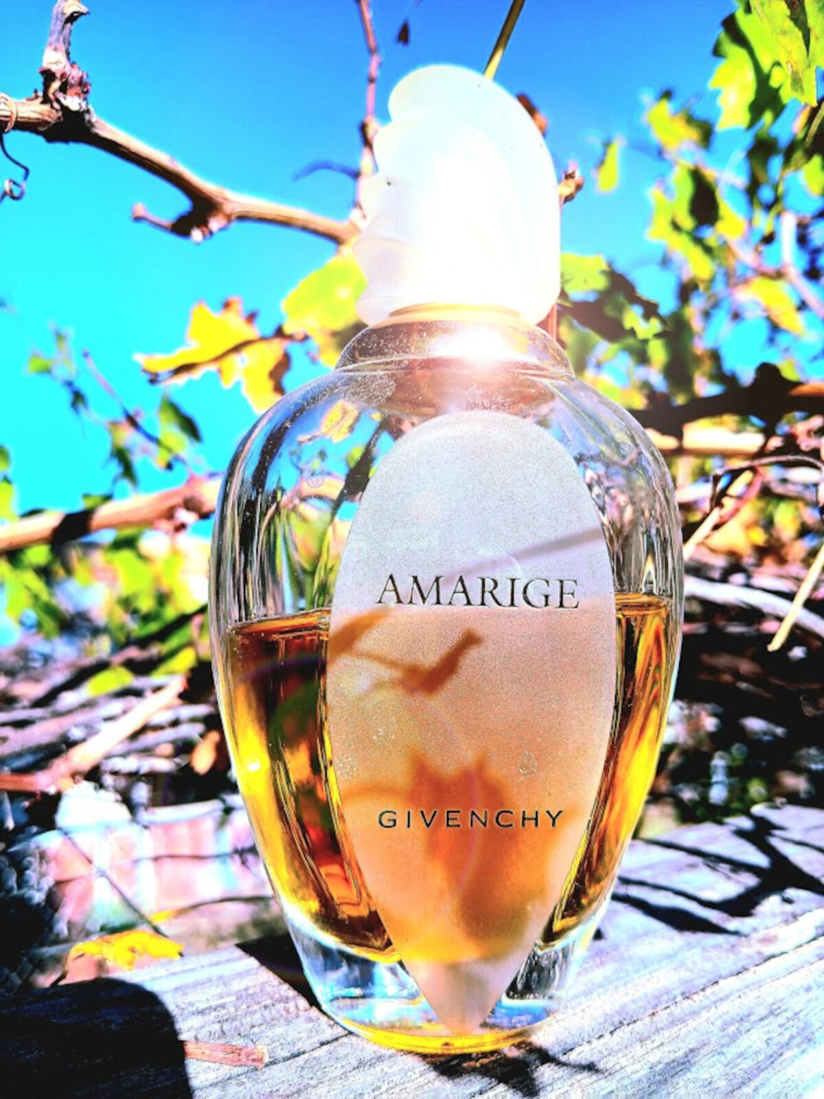 Amarige jde o krok dál a hraničí s uměleckým, je to bílá květina, je svůdná, je ohromující, ale zároveň má v sobě tu věc známou, pohodlnou, nevinnou. Amarige voní po heřmánku. Viníky za dosažení této barvy jsou mimóza, robinie, akácie, ta medová a dřevitá, sladká a bylinná příchuť, to jsou přesně ty tóny, které v Amarige znovu vytvářejí koření chutného, narkotického a zároveň veselého heřmánku, který tuto krásku Givenchy posouvá na jinou úroveň a vzdaluje ji od ostatních tuberózových parfémů.