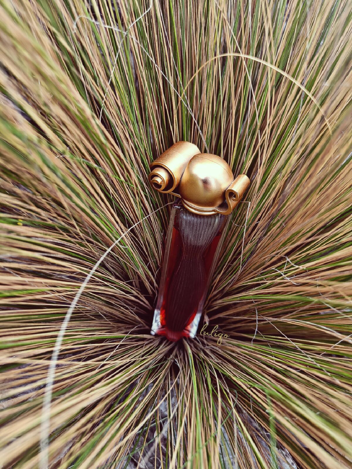 Nádherná, bohatá, luxusní, hřejivá, elegantní, ženská, podmanivá vůně. Je to také první vůně, která ve mně vyvolává hmatové vjemy: texturu starého dřeva, kůru, ořechovou slupku, samotný flakon..... Jako bych ji cítila konečky prstů. Extáze.