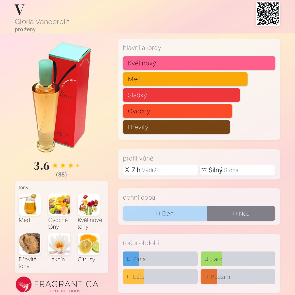 V podle Gloria Vanderbilt je Floral Fruity vůně pro ženy. V byl/a uveden/a v roce 1994. Vrchní tóny jsou Ovoce, Květinové tóny a Citrusy; střední tóny jsouMed a Leknín ; základní tón je Dřevité tóny.