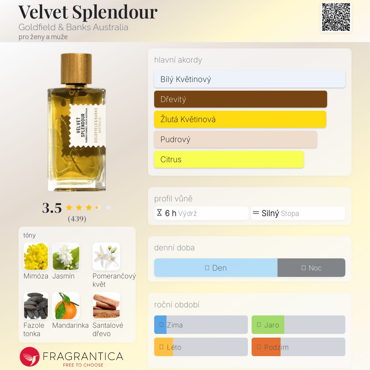 Velvet Splendour podle Goldfield & Banks Australia je vůně pro ženy a muže. Velvet Splendour byl/a uveden/a v roce 2019. "Nosem" za touto vůní je Wessel-Jan Kos.