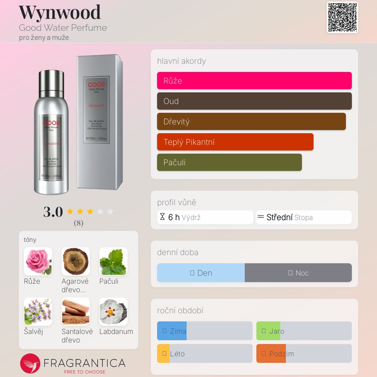 Wynwood podle Good Water Perfume je Orientální Woody vůně pro ženy a muže. Wynwood byl/a uveden/a v roce 2020. "Nosem" za touto vůní je Flavien Laurandeau. Vrchní tóny jsou Růžová růže a Kardamom; střední tón jeŠalvěj ; základní tóny jsou Agarové dřevo (oud), Pačuli, Santalové dřevo, Labdanum a Cedr.