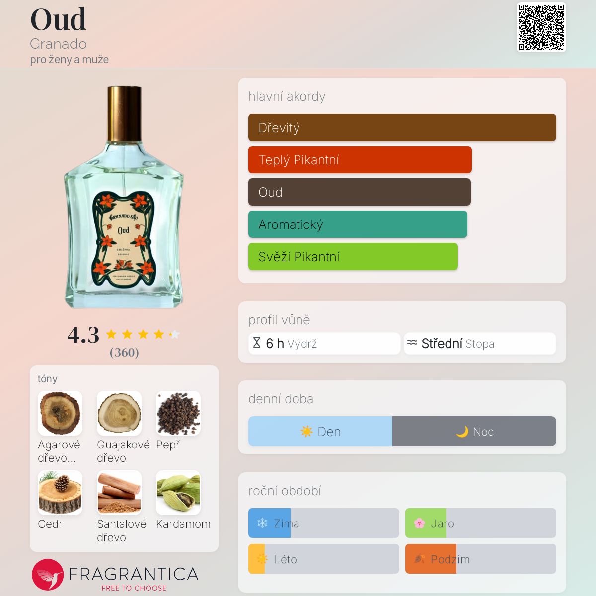 Oud podle Granado je Woody vůně pro ženy a muže. Oud byl/a uveden/a v roce 2020. "Nosem" za touto vůní je Leonardo Lucheze. Vrchní tóny jsou Guajakové dřevo, Černý pepř a Kardamom; střední tóny jsouCedr, Elimi a Pačuli ; základní tóny jsou Agarové dřevo (oud), Santalové dřevo a Absint.