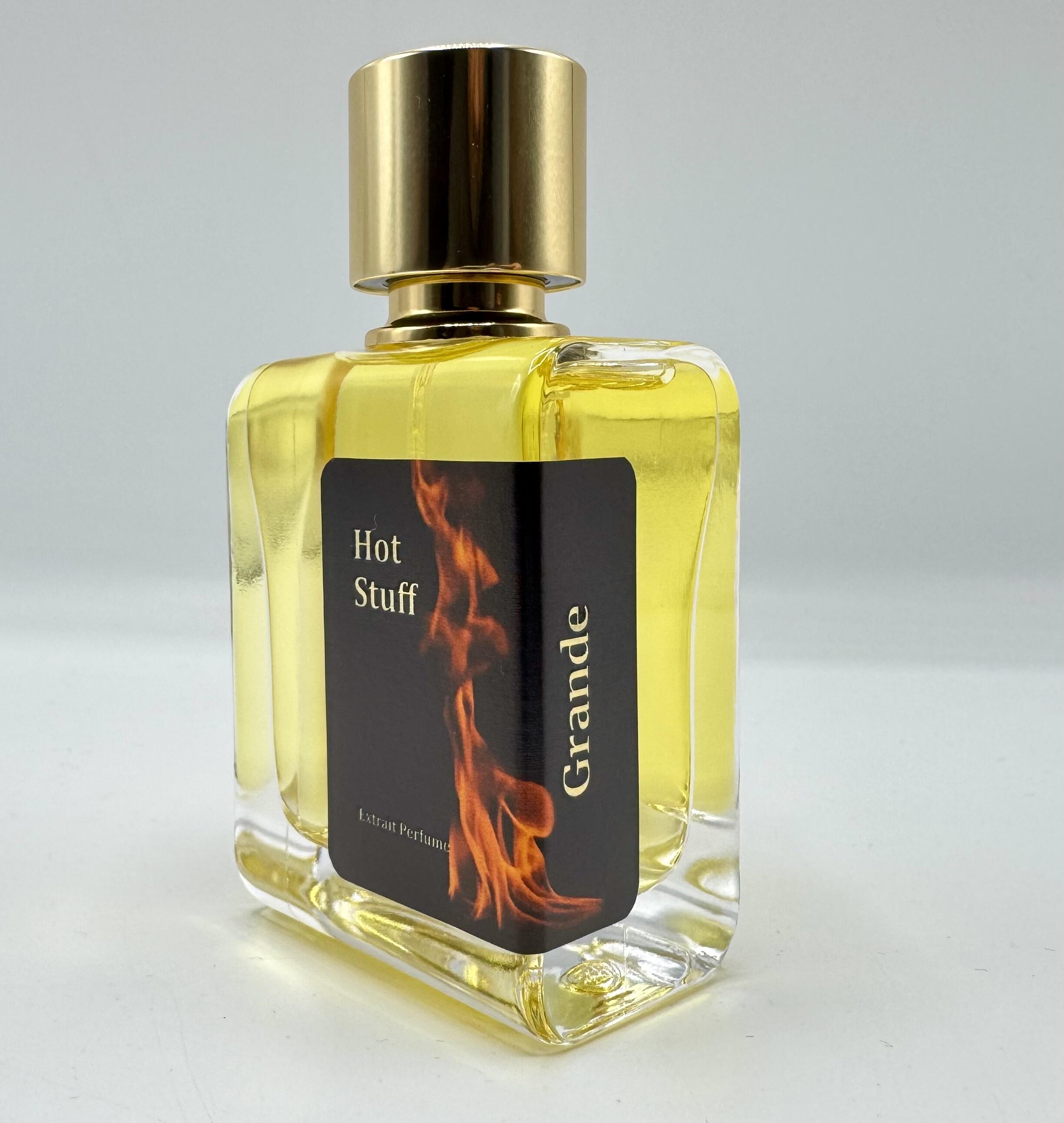 Hot Stuff podle Grande je vůně pro ženy a muže. Toto je nová vůně. Hot Stuff byl/a uveden/a v roce 2025. "Nosem" za touto vůní je Lorenzo Berti. Vrchní tóny jsou Ananas, Bergamot a Absint; střední tóny jsouTabákový list, Pečené jablko a Davana ; základní tóny jsou Včelí vosk, Vetiver, Fazole tonka a Dubový mech.