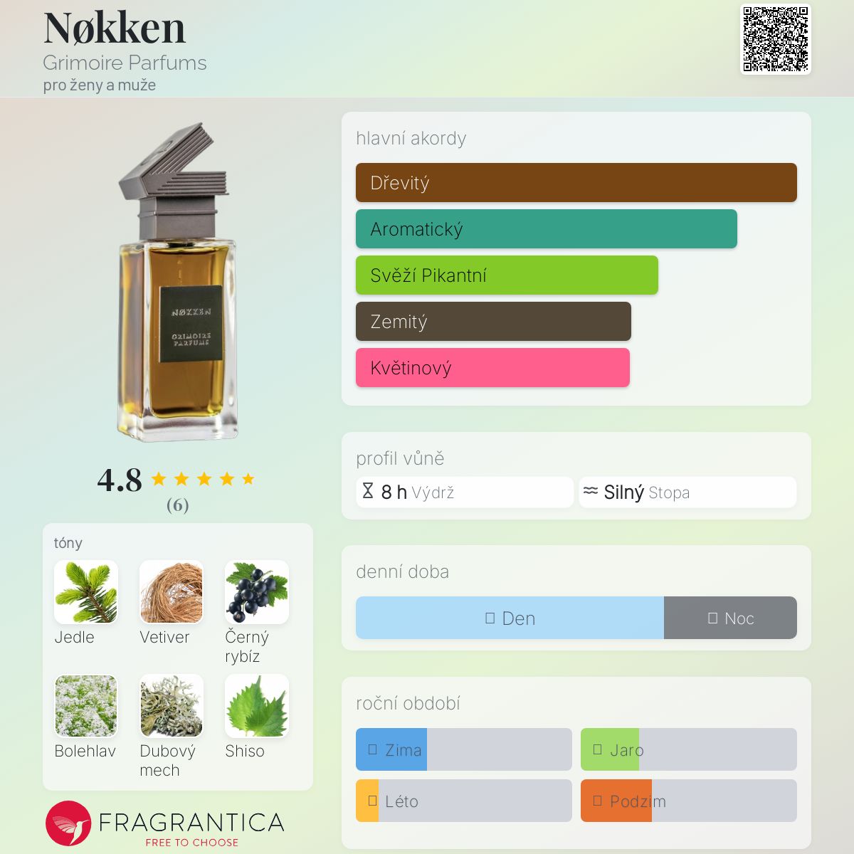 Nøkken podle Grimoire Parfums je Woody Aromatic vůně pro ženy a muže. Toto je nová vůně. Nøkken byl/a uveden/a v roce 2025. "Nosem" za touto vůní je Trung Vu. Vrchní tóny jsou Černý rybíz, Shiso, Černý pepř, Galbanum, Lesní jahoda, Fialkový list, Ostružina a Cypřiš; střední tóny jsouJedle, Bolehlav, Levandule, Boronia, Mořská řasa a Cypriolový olej ; základní tóny jsou Vetiver, Dubový mech, Guajakové dřevo, Pačuli, Olibanum, Cedr a Choya Nakh.