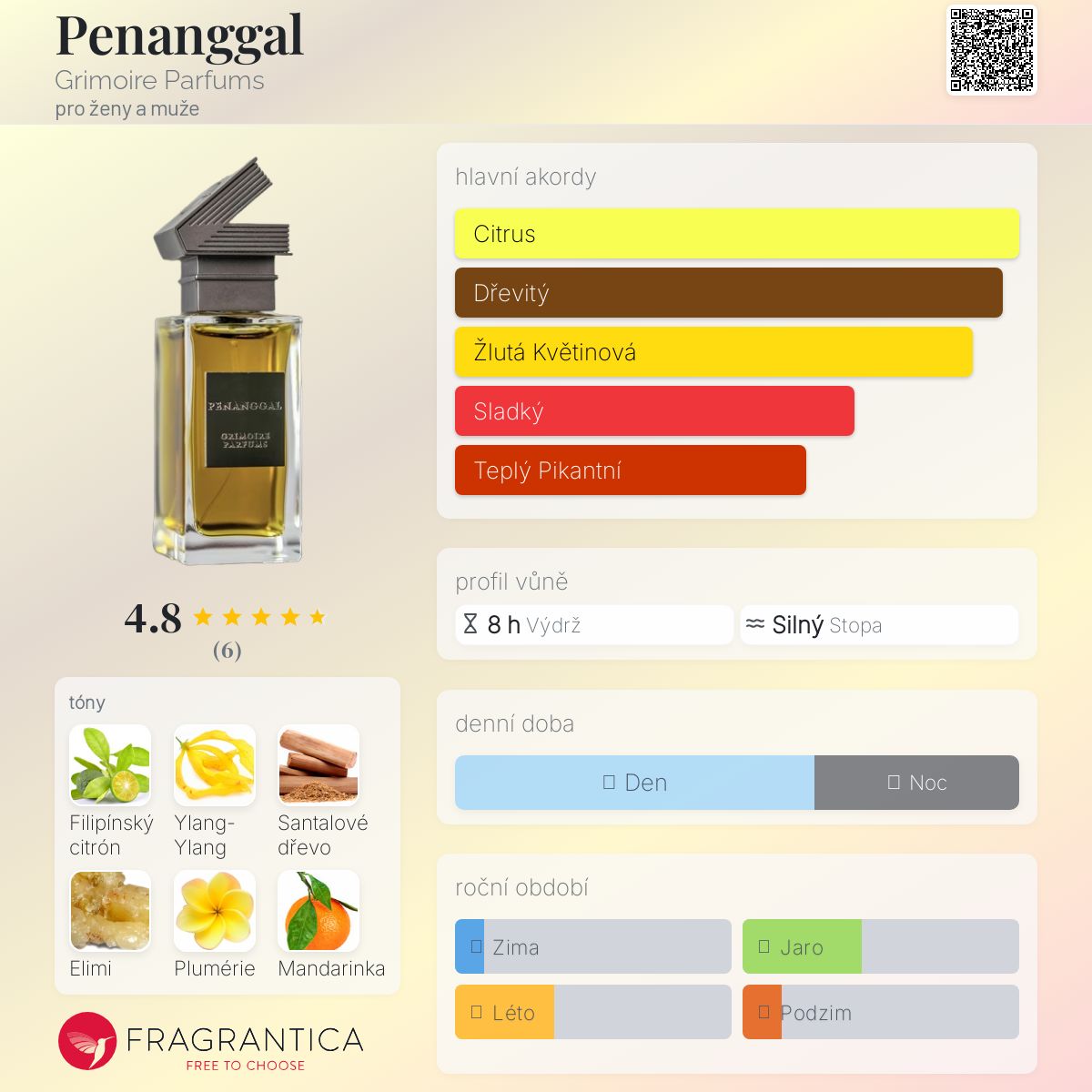 Penanggal podle Grimoire Parfums je vůně pro ženy a muže. Toto je nová vůně. Penanggal byl/a uveden/a v roce 2025. "Nosem" za touto vůní je Trung Vu. Vrchní tóny jsou Filipínský citrón, Elimi, Mandarinka, Papája, Pomelo, Koriandr a Zázvor; střední tóny jsouYlang-Ylang, Plumérie, Janovec a Magnólie ; základní tóny jsou Santalové dřevo, Dubový mech, Hřebíček, Pižmo a Jantar (ambra).