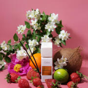 Všechny ovocné tóny jsou patrné, ale hlavní hvězdou je jahoda. Je ukotvená silným bílým pižmem a vanilkovým základem, takže nezaniká příliš řídkým vzduchem jako některé jiné ovocné vůně. Pižmo je krémové, ale také trochu ostré. Má lehký nádech mléčného koktejlu, ale ještě více mi vůně připomíná čerstvou jahodovou limonádu. Šumivá a povznášející. V dalekém sušení je také trochu jako jahodové lízátko, ale v okouzlující parfémové podobě. V žádném případě mi nepřipomíná Chantilly, ani krajku, ani šlehačku.