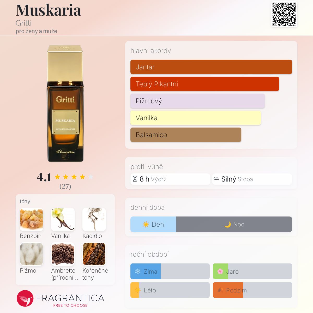 Muskaria podle Gritti je Orientální Spicy vůně pro ženy a muže. Toto je nová vůně. Muskaria byl/a uveden/a v roce 2025. "Nosem" za touto vůní je Luca Gritti.