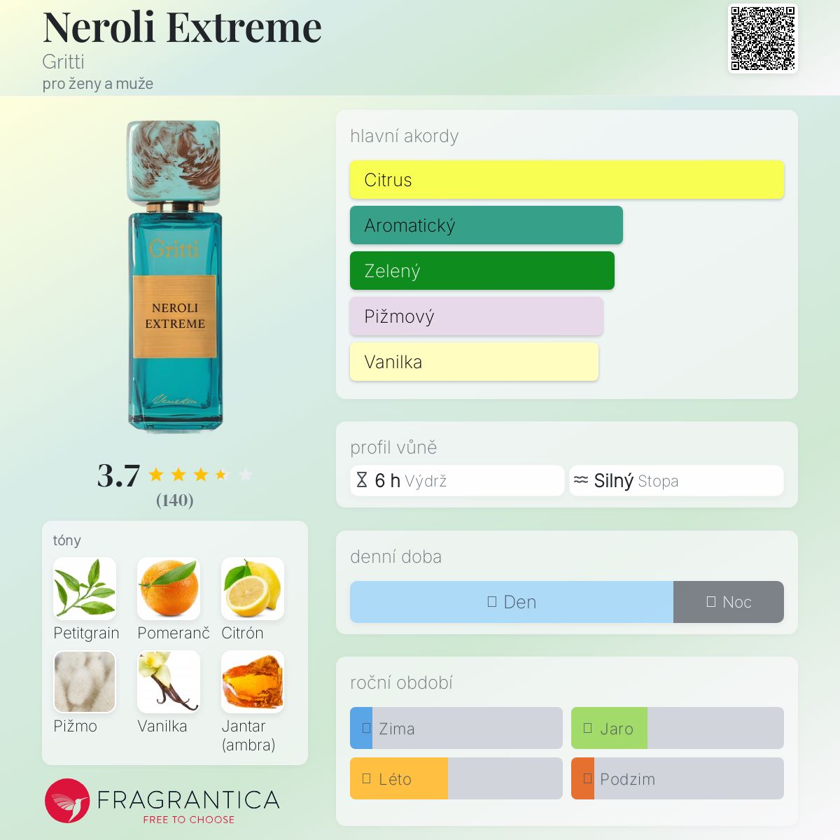 Neroli Extreme podle Gritti je Citrus vůně pro ženy a muže. Neroli Extreme byl/a uveden/a v roce 2017. "Nosem" za touto vůní je Luca Gritti.